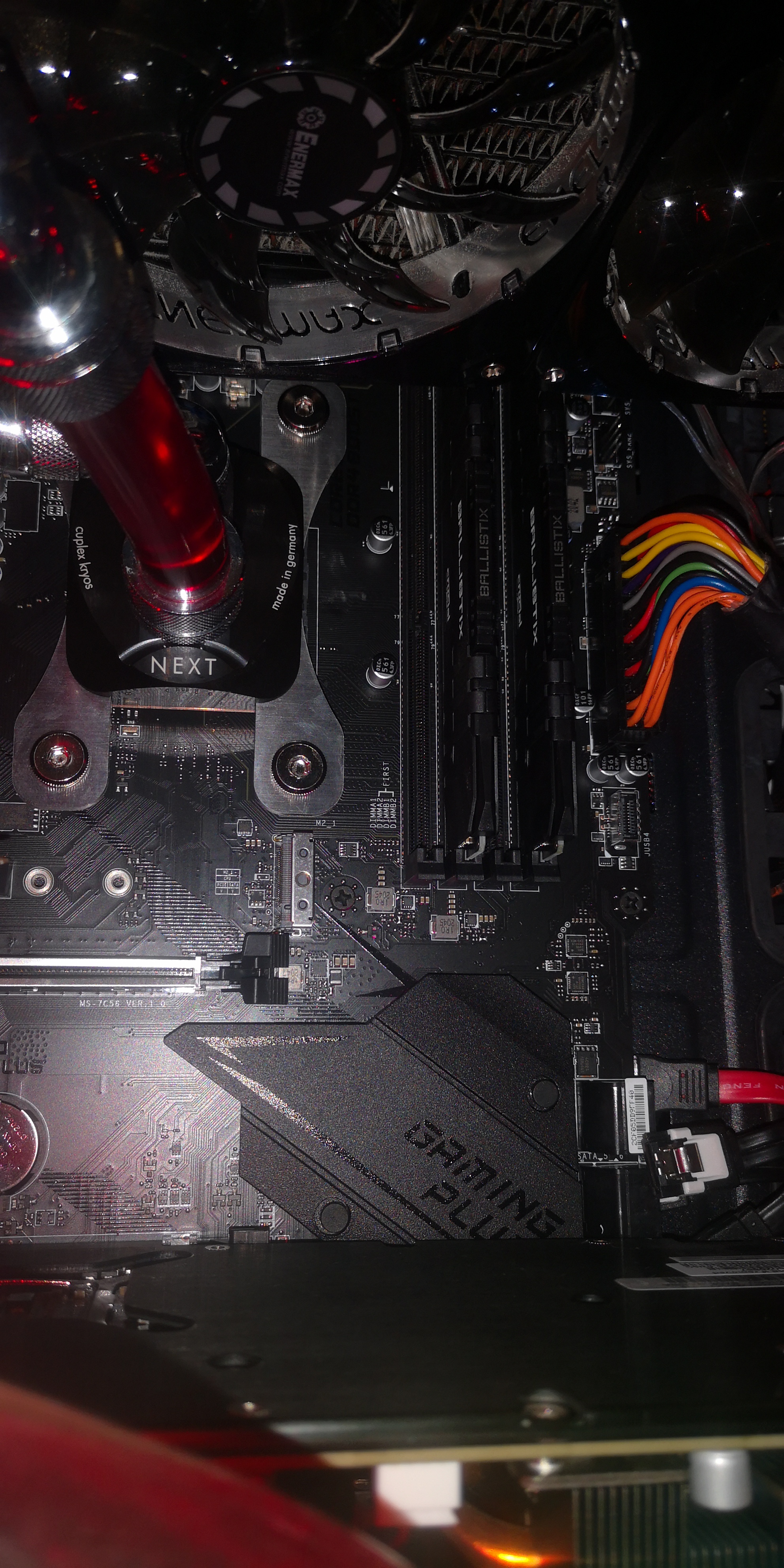 ...Habe die Karte an beiden Slots probiert, geht nicht. Habe Ram raus und rein gesteckt, bringt nichts. Steckerverbindungen weitestgehend gecheckt. Pumoe vom aquaero System hängt dran, sollte das aber nicht stören, was meint ihr? Siehe Bilder... Ich weiß nicht, wo es gerade hängt. Habe such gelesen, bei einem hats dann nach einer Nacht auf einmal funktioniert..? Technik halt.