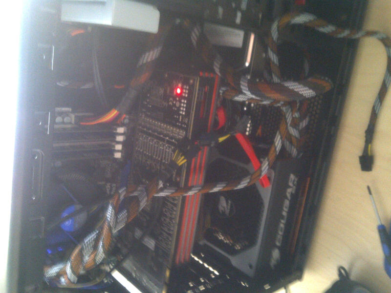 die Grafikkarte habe ich im PCI-E Slot. Allerdings bekomme ich kein Bild (weder über DVI noch HDMI).