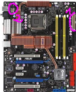 habe power switch und das ganze alles angesteckt und angemacht jedoch hab ich einfach kein bild bekommen, habe nur einen VGA-Monitor und habe daher den Adapter von der Grafikkarte verwendet da diese nur 2 DVI anschlüsse hat. Habe beide ausgänge einmal getestet jedoch bekommt der bildschirm nicht immer ein signal das er angeht...