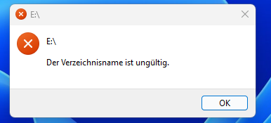 3. M2 ausgebaut und via Adapter an meinem Laptop angeschlossen, Fenster mit E/ Der Verzeichnisname ist ungültig. (siehe Foto)