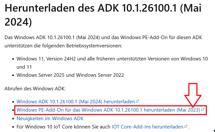 Nachbemerken möchte ich noch: Für die Windows PE Bootdateien (AOMEI u. dgl.) nutze ich das Windows ADK Paket. Obwohl Microsoft das ADK Paket mit Version von 2024 anbietet, wird das ADDON für Windows PE nur mit Version von 2023 angeboten! Da war das neue UEFI Zertifikat 2023 noch gar nicht draußen. Wohl ein Grund, weil die USB Bootmedien mit Secure Boot nicht funktionieren.