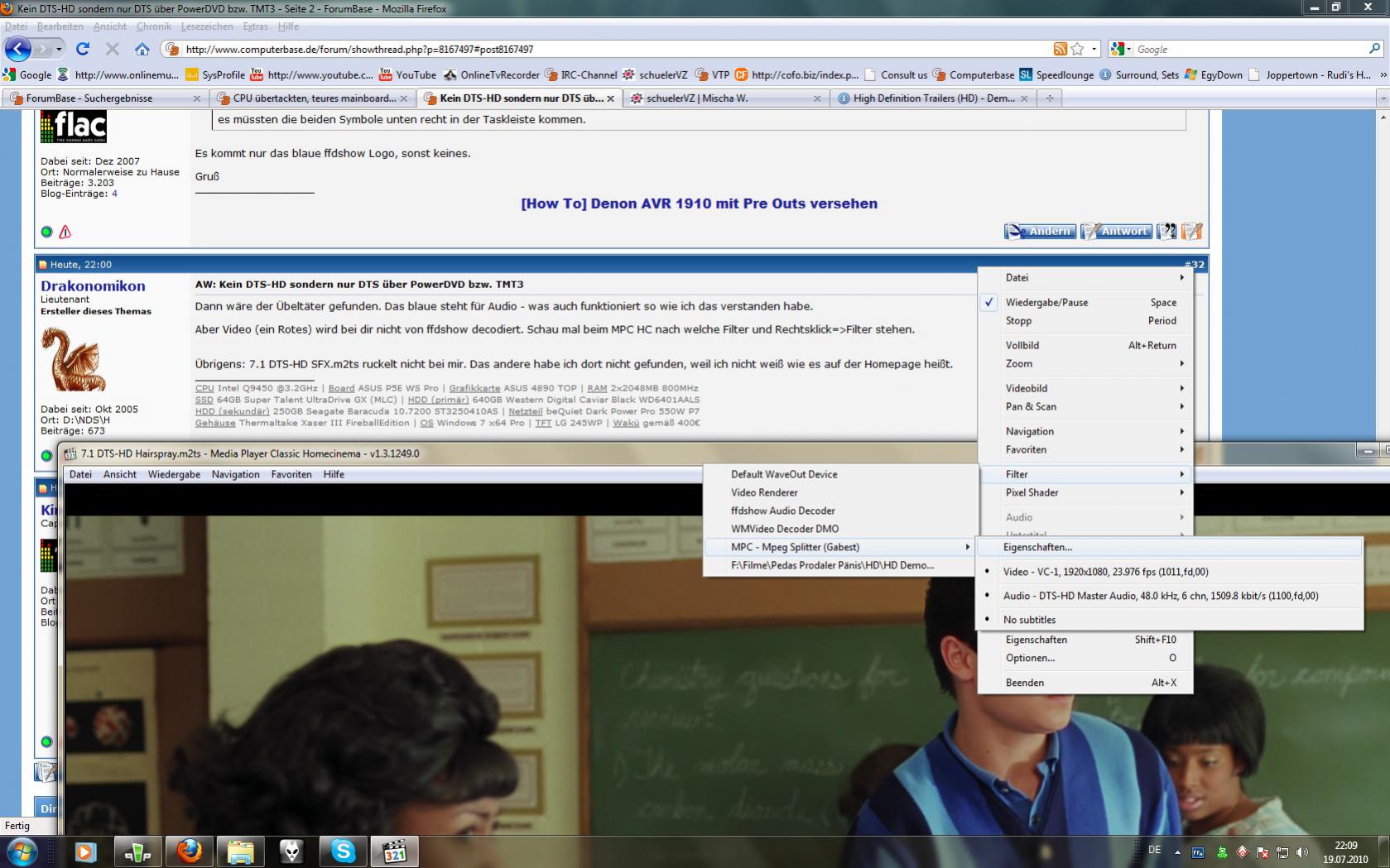 Kein DTS-HD sondern nur DTS über PowerDVD bzw. TMT3