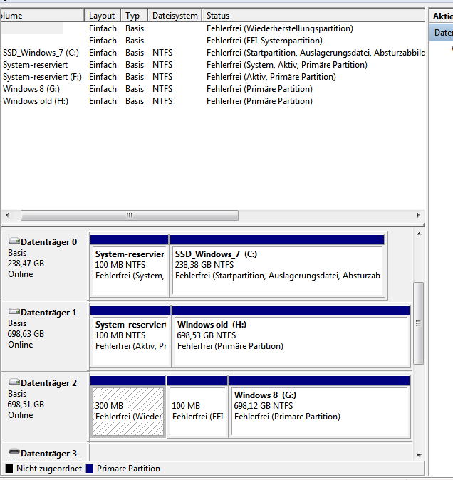 gestern habe ich Windows 8 (64 bit) auf eine meiner beiden HDDs installiert. Derzeit habe ich Windows 7 auf der SSD, einmal W 7 auf einer HDD (hat historische Gründe, dass dort auch ein W 7-System installiert ist) und auf einer HDD nun Windows 8.