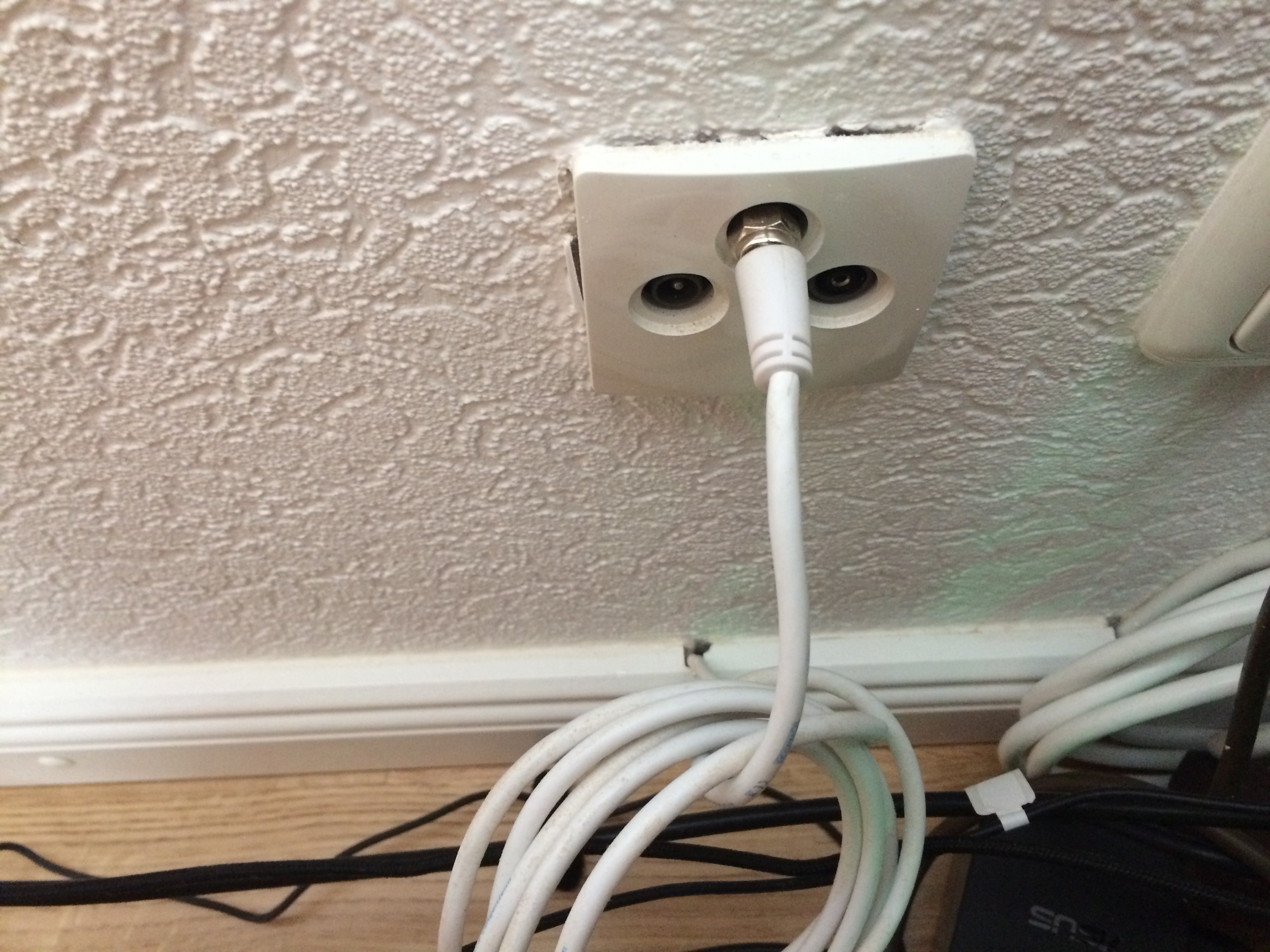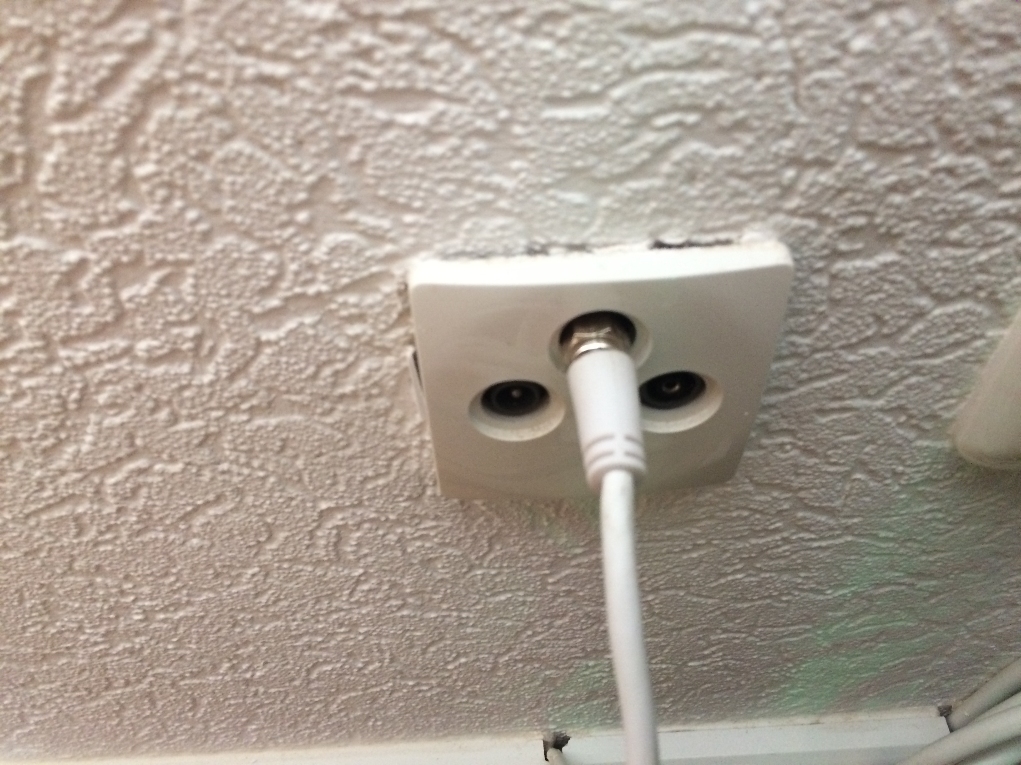Seit vorgestern habe ich mein neues Zimmer und dort hat mein Vater von einer Buchse in den Fernseher ein weißes Kabel angeschlossen damit ich Astra empfange und das funktioniert auch wieder nur 2 Tage.