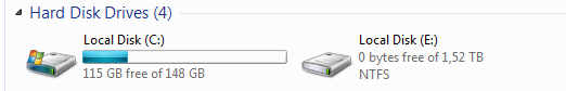 Danach den Rechner wieder mit Windows hochgefahren und seither wird für die Partition auf die das Backup geschrieben wurde "0 Bytes free" angezeigt und komischerweise ist auch der Balken, der den noch freien Speicher visualisert (Screenshot), verschwunden.