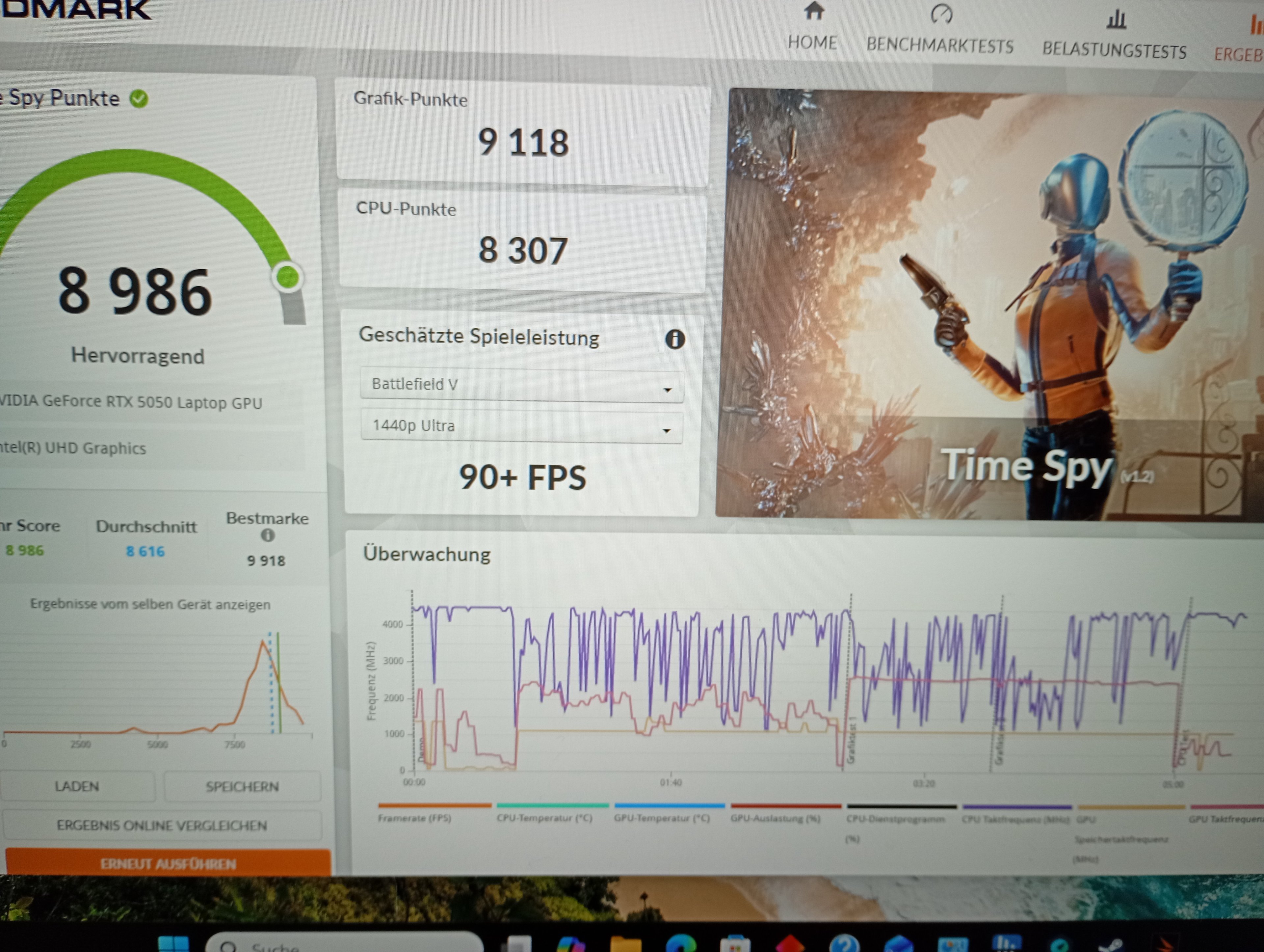 Leider ist mir die CPU Leistung zu inkonsistent, im Cinebench 26 throttelt er nach wenigen Sekunden, weil ein Kern viel wärmer wird als die anderen, auch die Graphen vom TimeSpy sehen nicht berauschend aus: