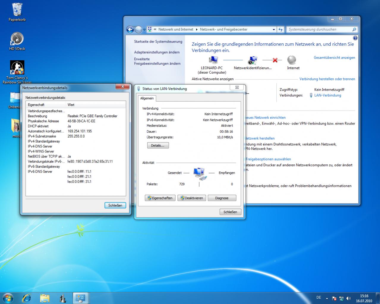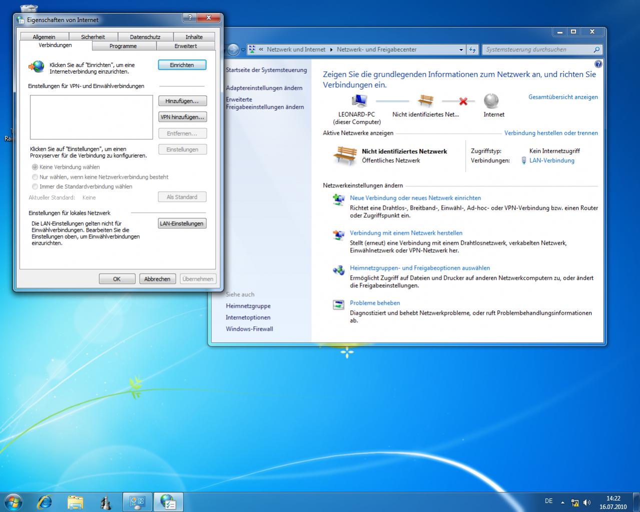 Ich habe einen neuen PC mit Windows 7 und benutze den Speedport W504V. Sie sind über Lan verbunden. Der PC identiviziert das Netzwerk nach dem Hochfahren, aber er hat keine Verbindung zum Internet -.-" Bei meinem "Uralt"Laptop (win xp) hat es, genau wie bei diesem PC (win vista) hier, einfach so ohne Einrichtung geklappt. Der PC zeigt das Netzwerk als:"nicht identiviziertes Netzwerk" an. Wie bekomme ich jetzt Internetz :O