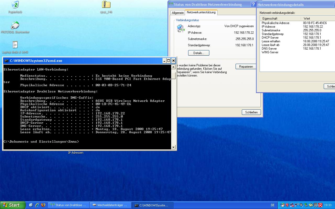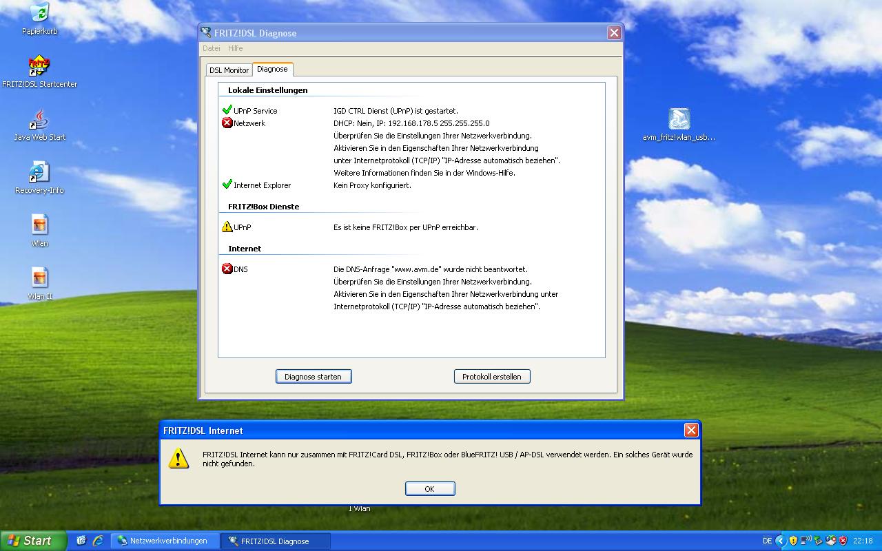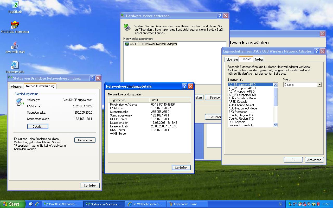 ich bekomm einfach keine Internetverbindung obwohl der WLan-Stick von Asus arbeitet UND eine Verbindung zur Fritz Box hat?!? Die Verbindungsstärke wird immer mit sehr gut angezeigt. Also der Netzwerkschlüssel scheint richtig zu sein. In der Fritz Box