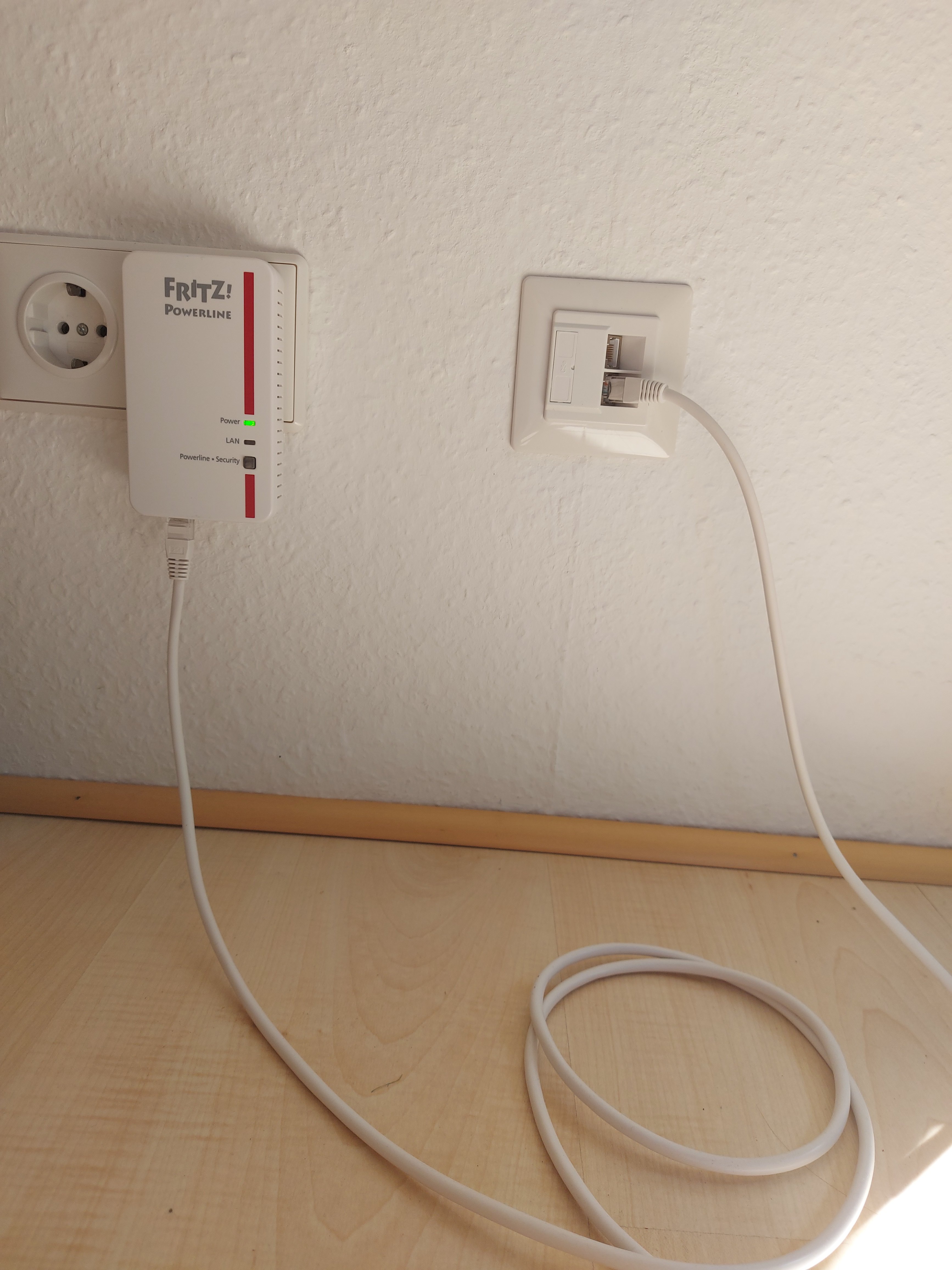 Mein erster Gedanke war, das Powerline Device neben den Router anzubringen, mit diesem direkt verbinden und die Büchse für mich nutzen.