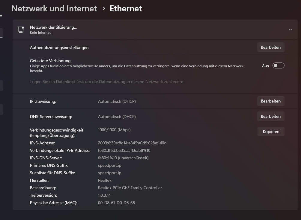 Desktop pc mit Windows 11 angeschlossen über lan (kein wlan verfügbar da altes Mainboard)