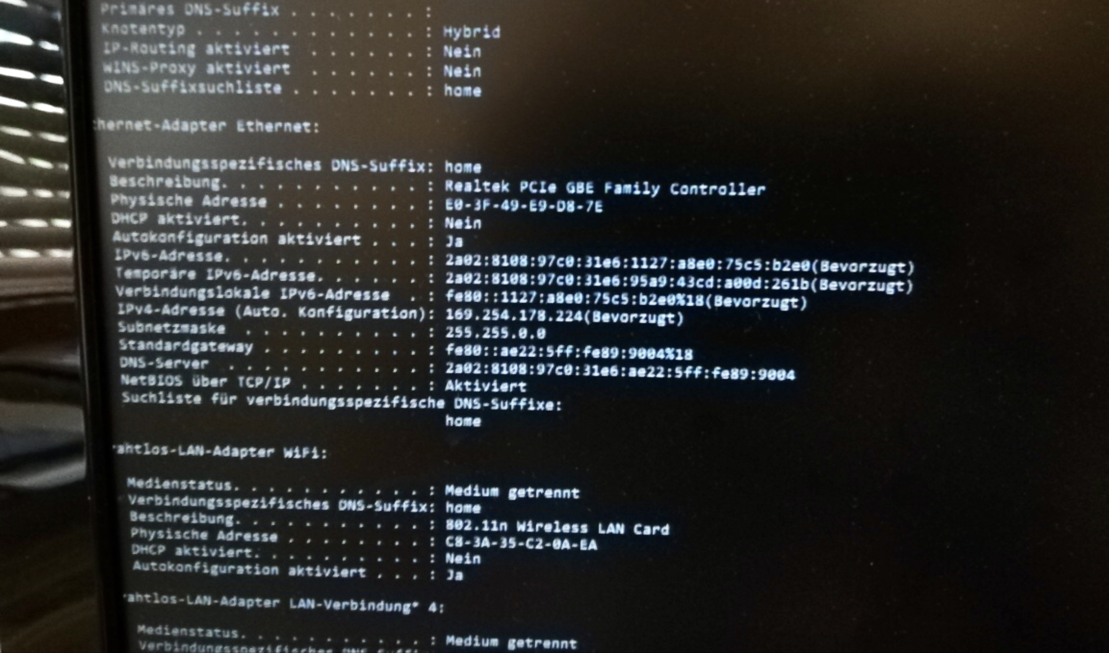 Ich habe noch mal das LAN Kabel angstöpselt und config all eingegeben.