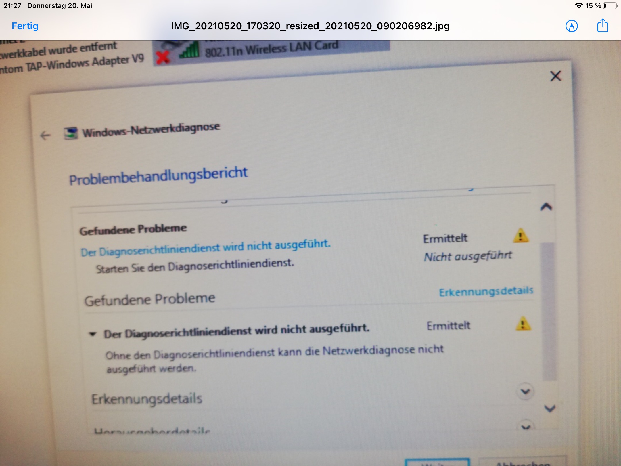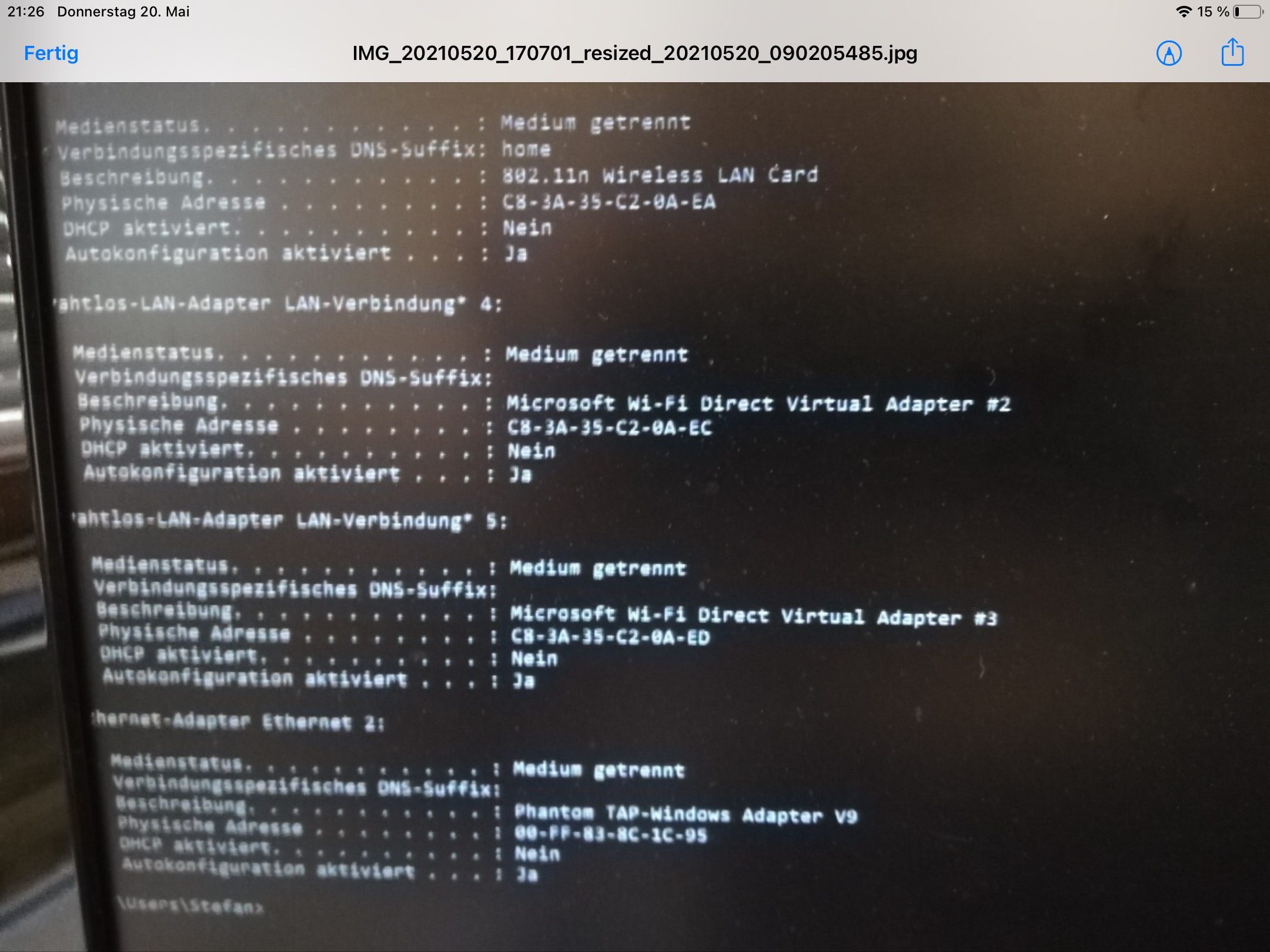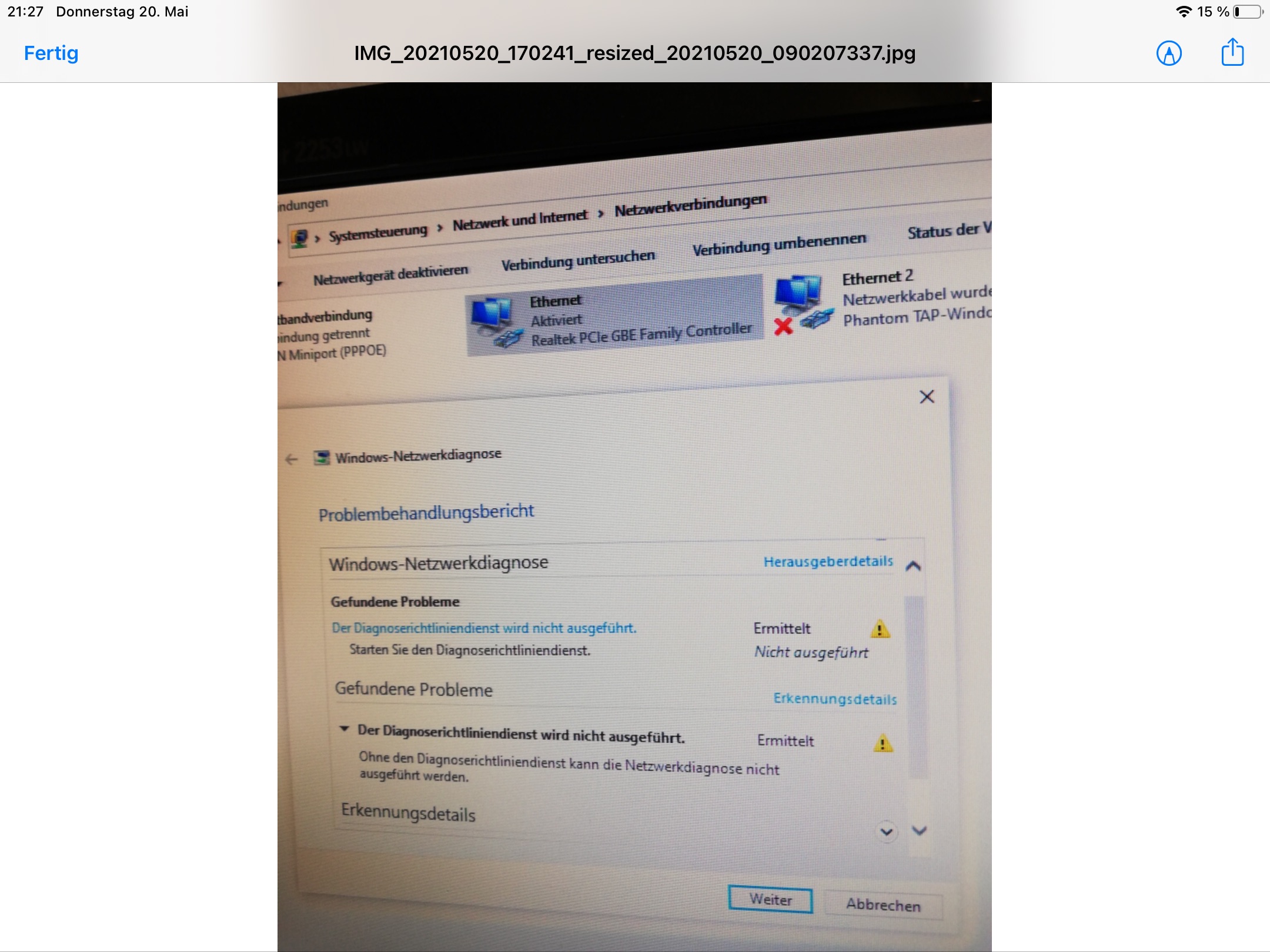 TCP hab ich per Handy auf den PC transferiert und Windows default als Admin ausgefüh. Ohne Ergebnis bzw. Lösung des Problems.