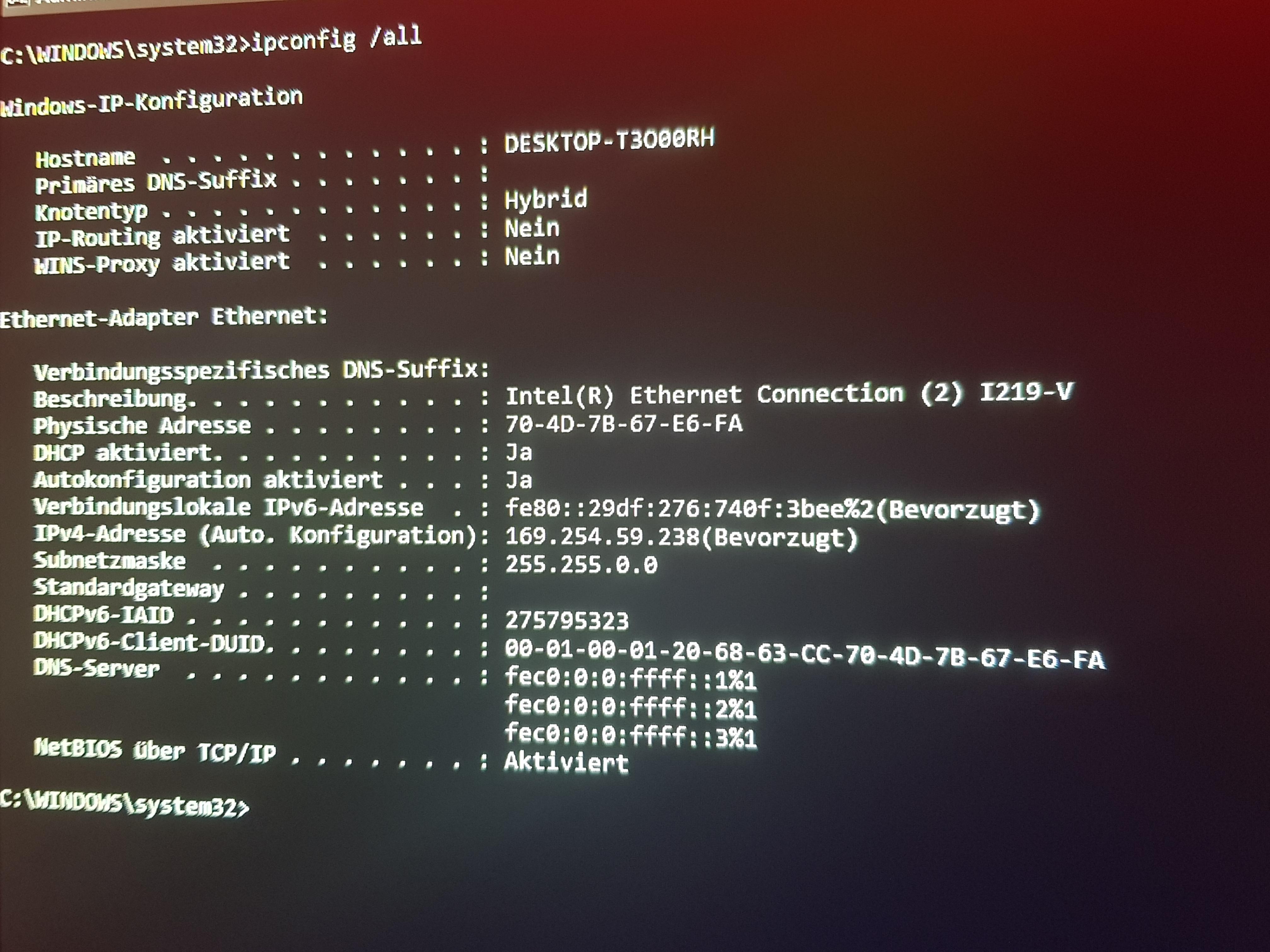 Bitte ipconfig hier posten..
