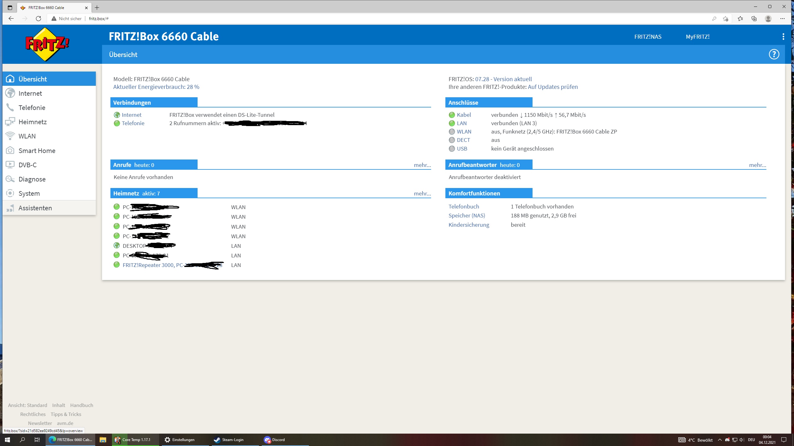 letzte Nacht ca. 0 Uhr ist bei uns (im Osten von Hannover) das Kabelnetz komplett zusammengebrochen, auch das Kabelfernsehen ging nicht. Heute morgen um 6 Uhr ging alles (Beginn Homeoffice), um 10 Uhr war das Kabelnetz wieder zusammengebrochen, diesmal jedoch nur das Internet, Fernsehen ging. Also Störungsmeldung abgegeben, die meinten es liege am Router (ich teilte dem Menschen meine Skepsis diesbezüglich mit), ein neuer soll mir zugesendet werden. Ich setzte den Router auch zwischendurch auf den Werkszustand zurück, ohne Erfolg.