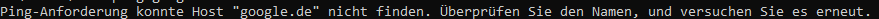 Ping-Anforderung konnte Host "google.de" nicht finden. Überprüfen Sie den Namen, und versuchen Sie es erneut.
