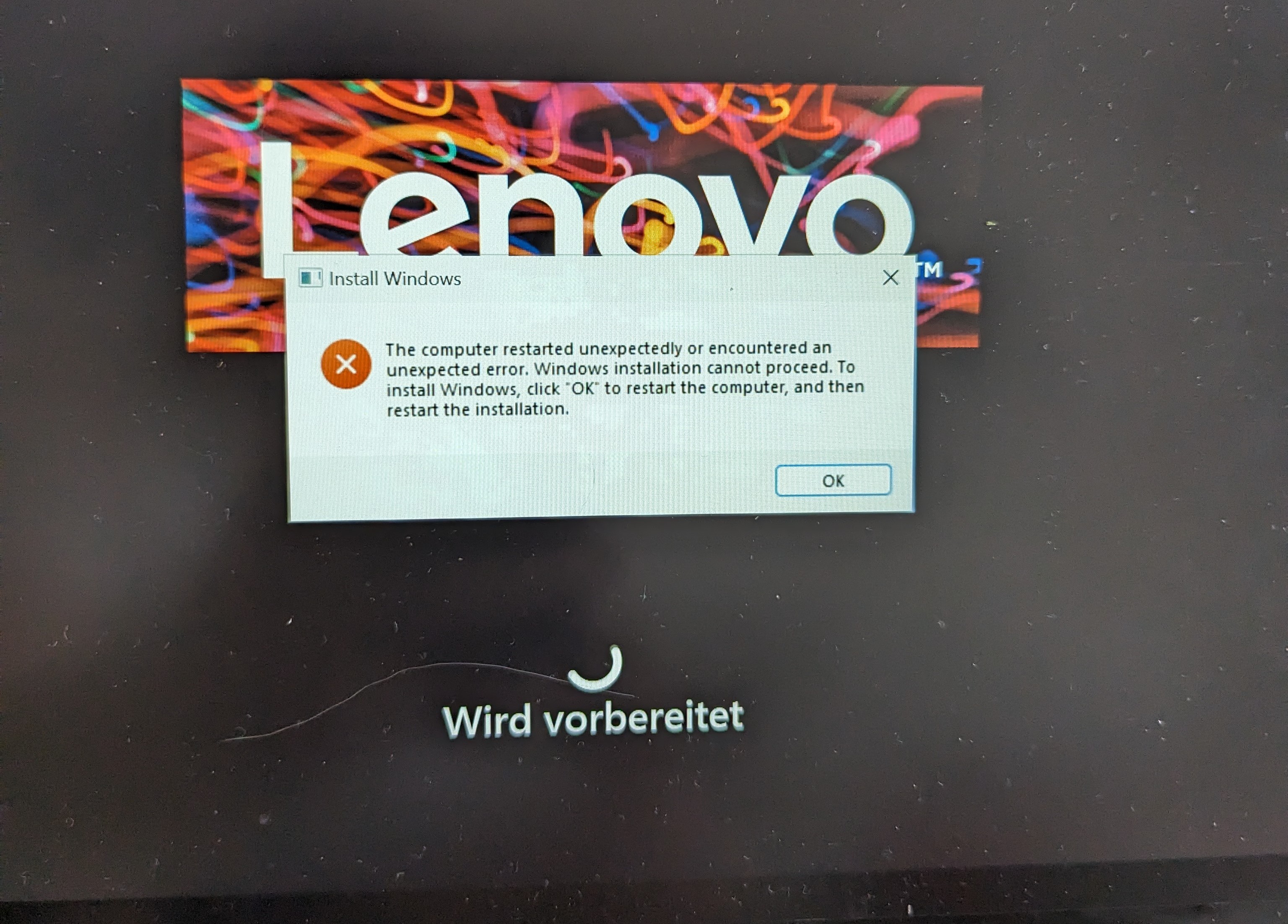 Ich denke, ich sollte versuchen den Laptop vollständig zu resetten. Die letztenmale hat dies nicht geklappt, da er abgestürzt ist. Die wichtigen Daten habe ich gesichert.
