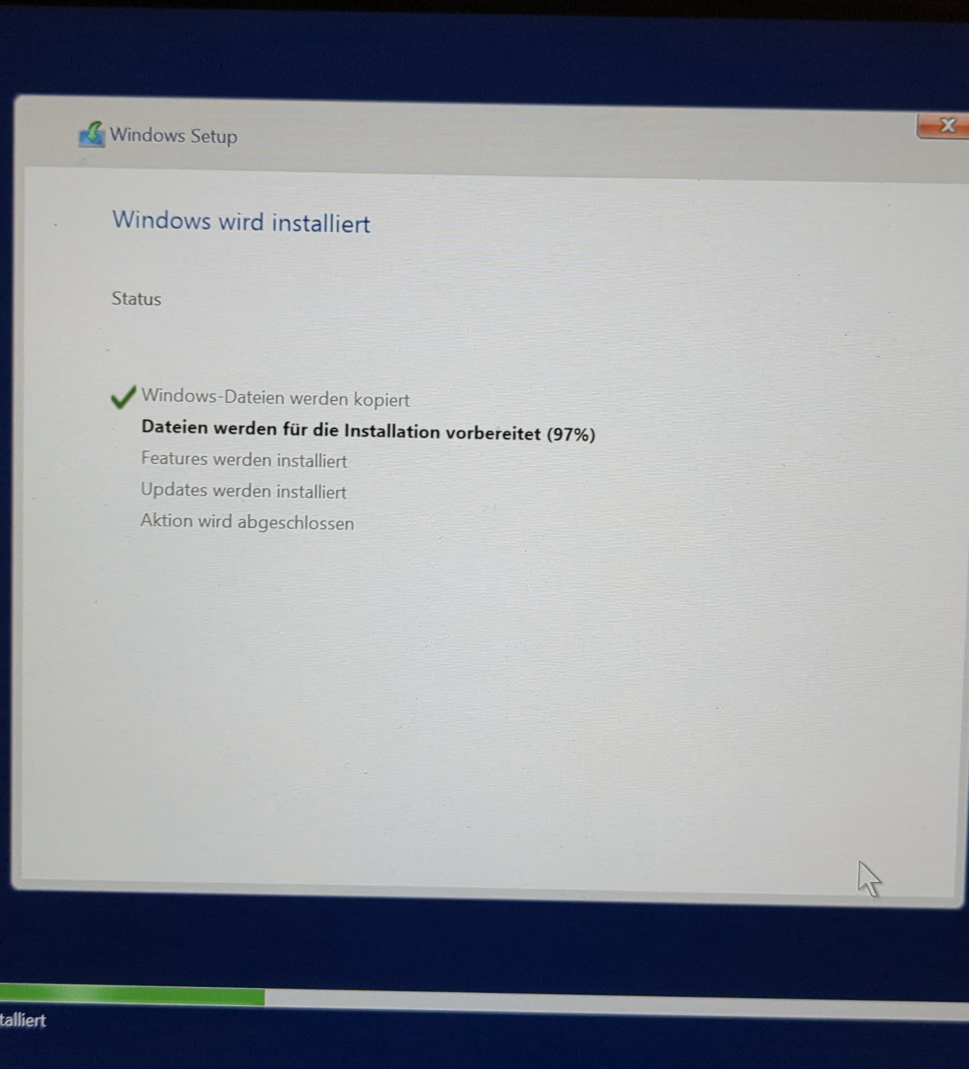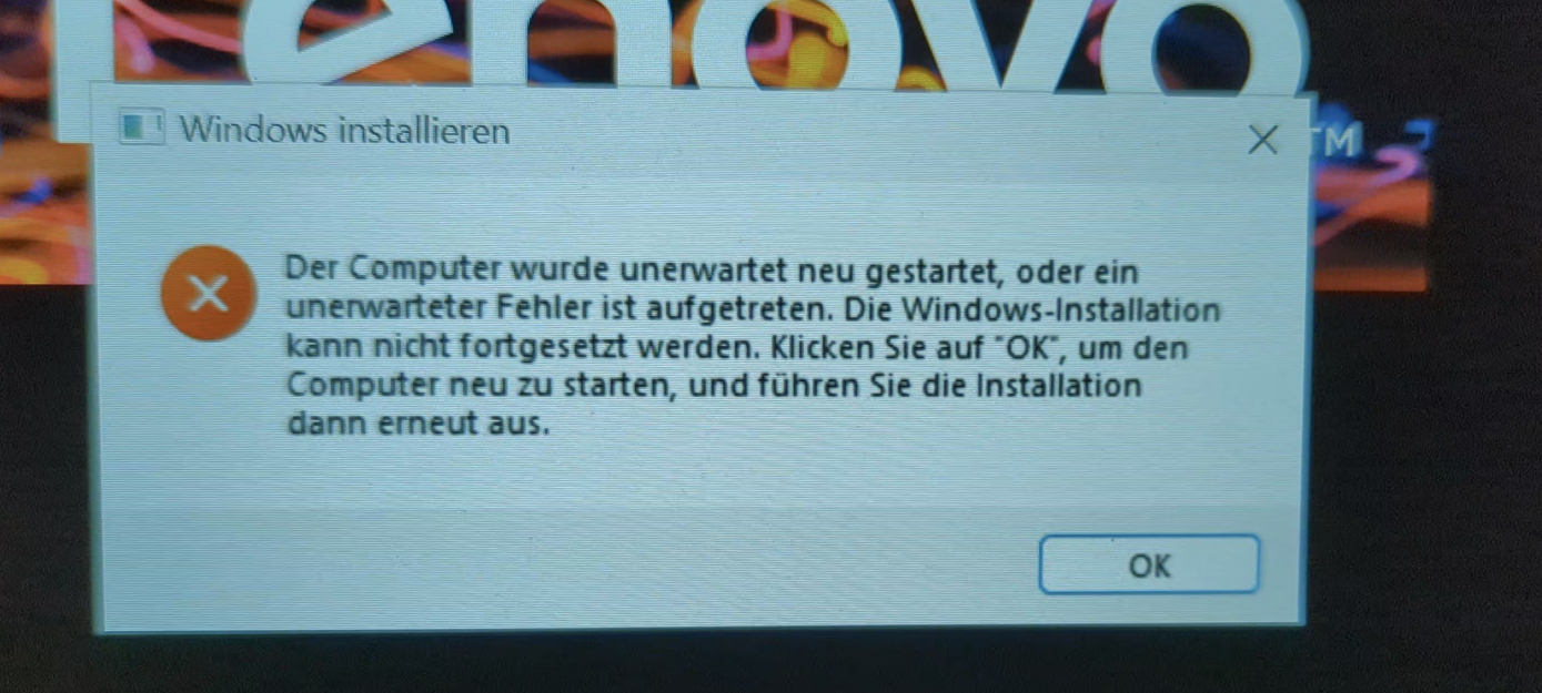 Habe ne neue SSD bestellt und heute getestet. Leider bricht die Installation nach dem Partitionsbildschirm ab..