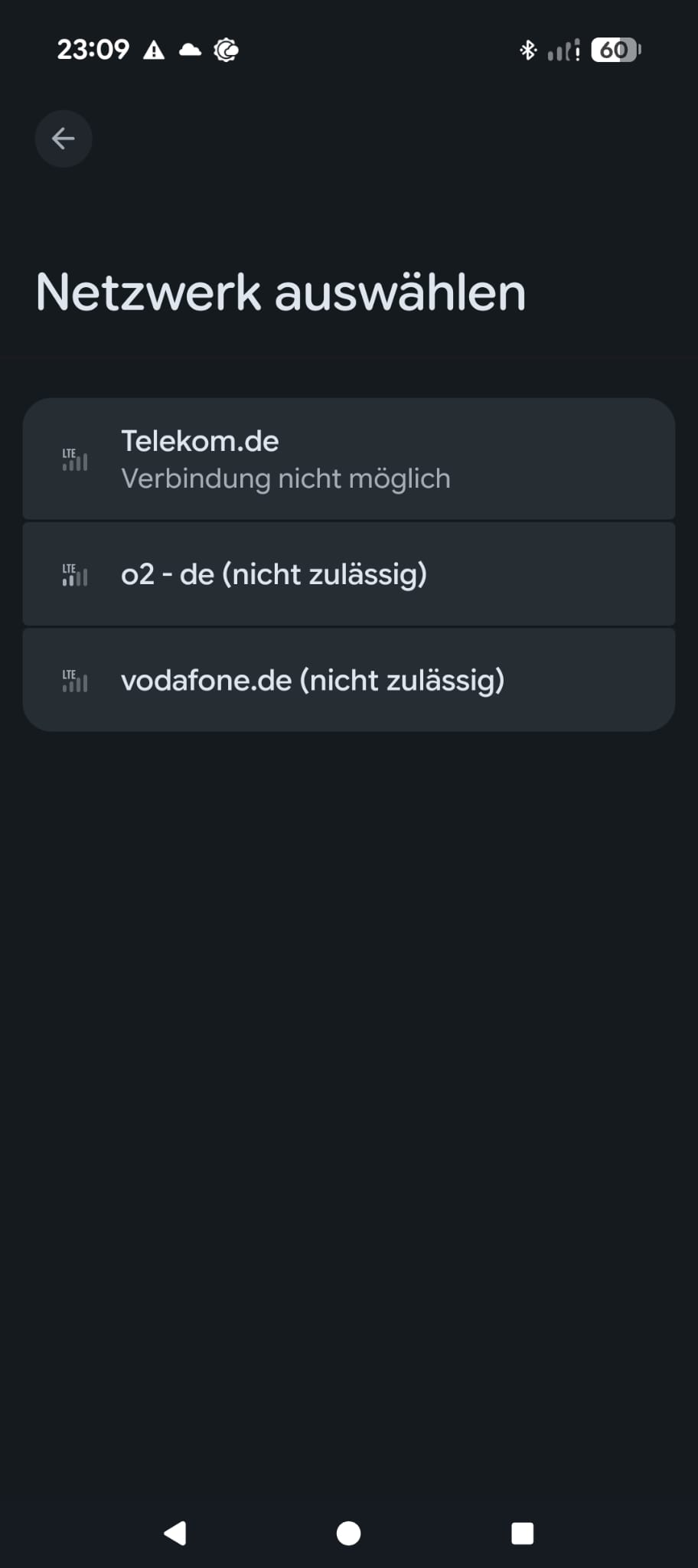 - bei Netzsuche werden Telekom, o² und Vodafone gefunden (die beiden Letzteren mit dem Zusatz "nicht zulässig")