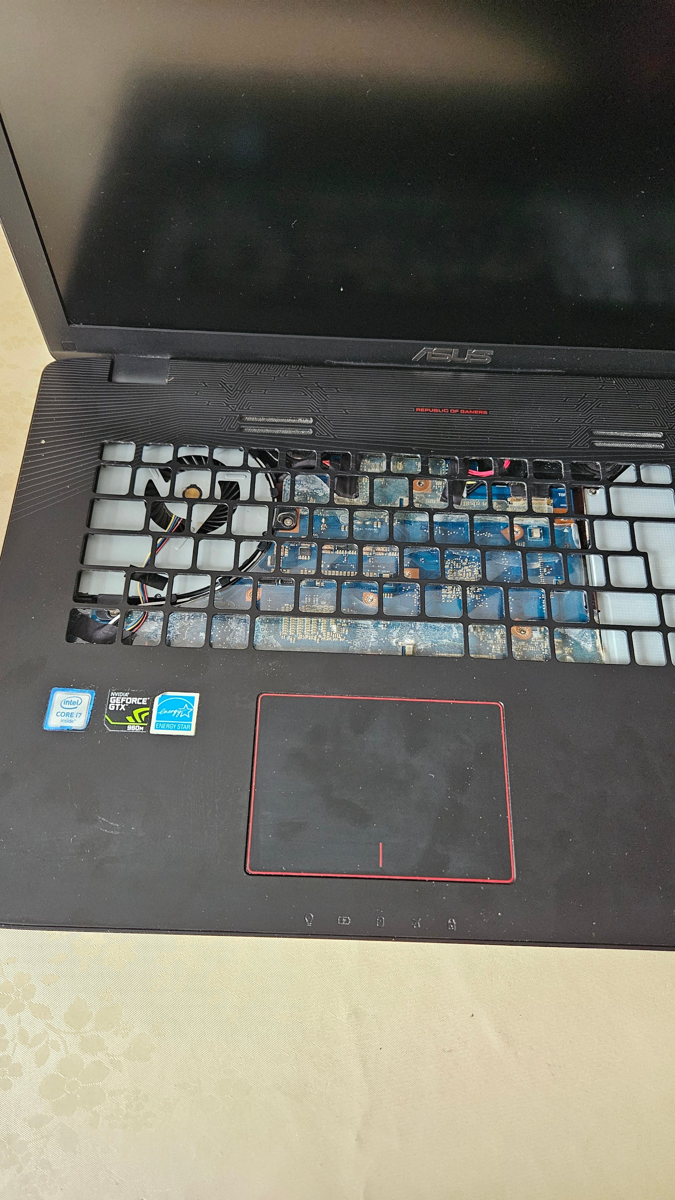 der asus gl552vw hatte ein kleinen Wasserschaden, nun verursacht die Tastatur des Notebooks eine Art Kurzschluss (die Stromaufnahme geht von 0,1A auf 0, sobald die Tastatur angeschlossen ist und das Gerät Strom hat).