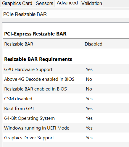Ich bekomme rBAR nicht aktiviert. Siehe Screenshot.