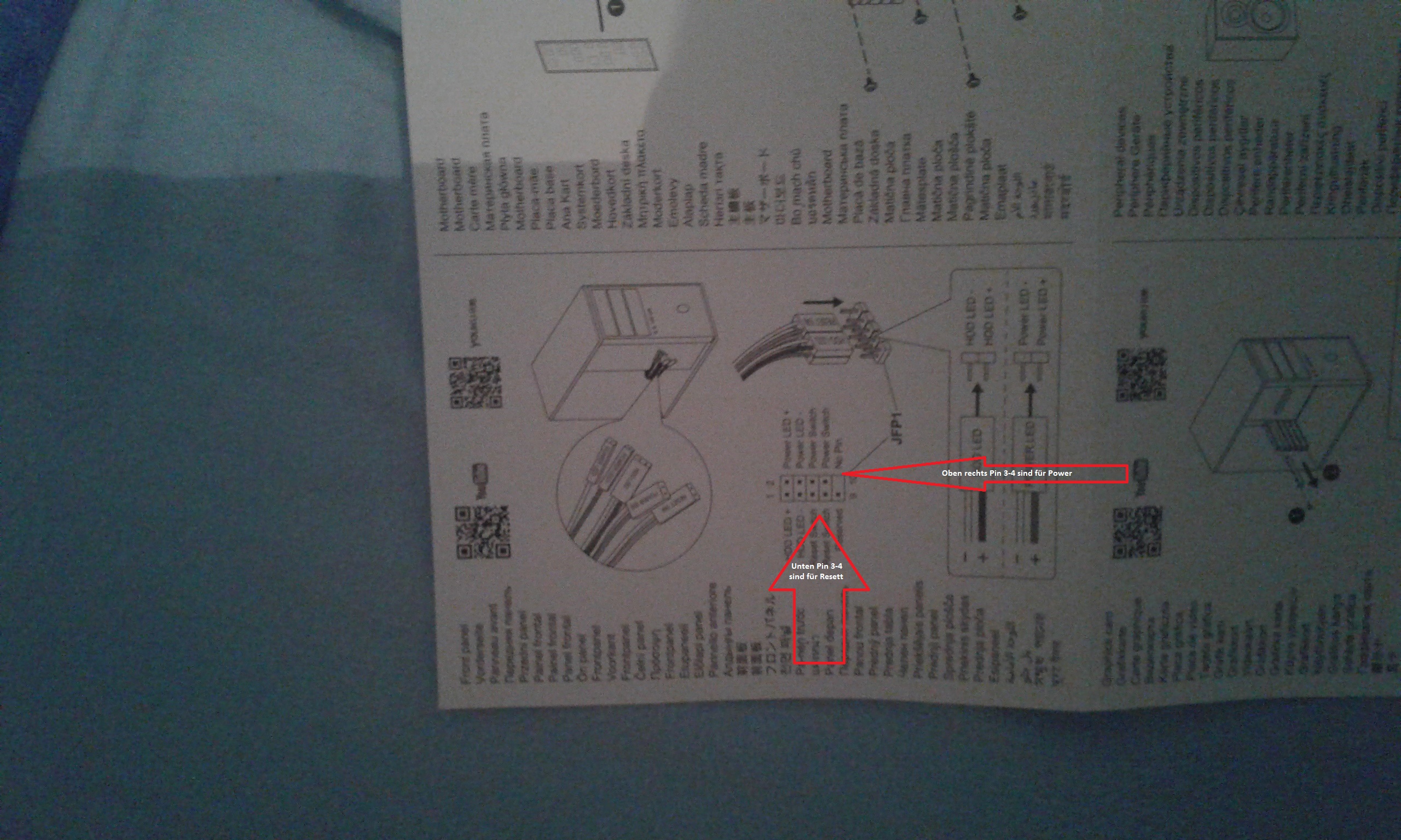 nur wollte der PC das nicht :-)nun habe ich wieder alles ausgebaut und den PC nur mit Netzteil, CPU Grafikkarte und Ram auf ein Tisch gestellt und wollte erneut starten... doch nix passierte. Ich habe die HDD LED, Reset SW, POWER SW auf die vom Handbuch geforderte stelle eingestöpselt und die Led Anzeige am enschalt Knopf brennt Rot doch der PC startet einfach nicht. Netzteil habe ich schon mit überbrücken getestet und funktioniert auch. Wisst ihr vielleicht was ?