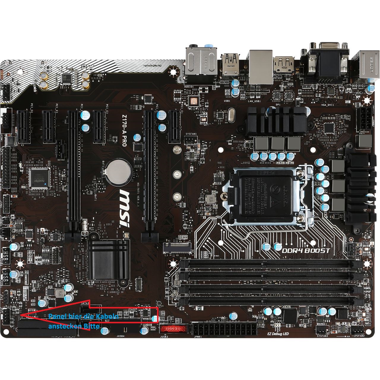 Stimmt nicht ganz Handbuch Seite 15 :) Jetzt habe ich die richtig dran gesteckt trotzdem startet der PC immer noch nicht