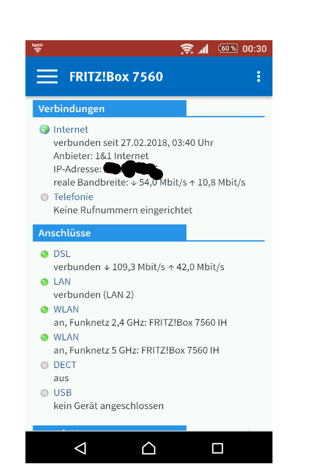 Fritzbox zeigt die Bandbreite an so wie sie sein soll