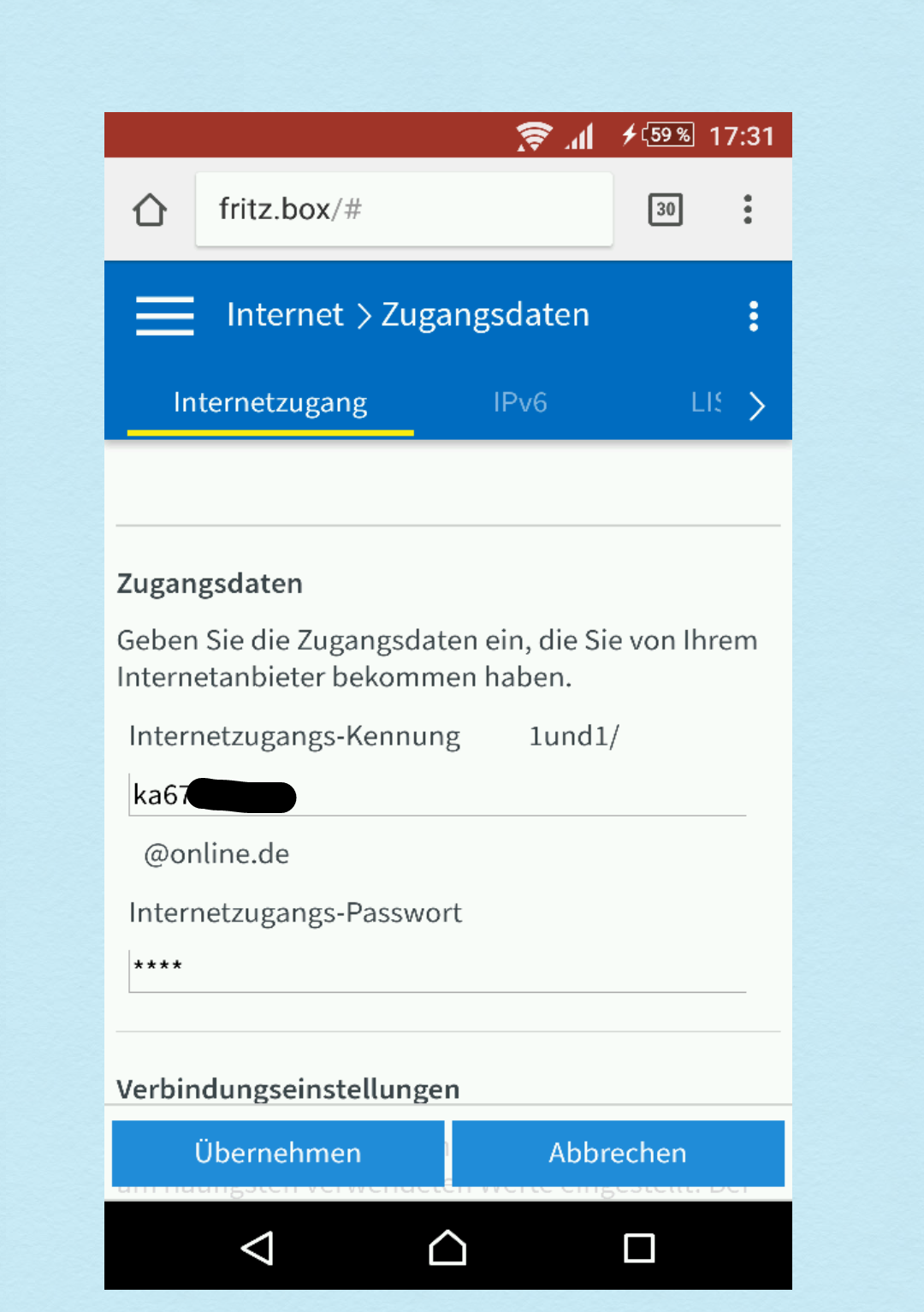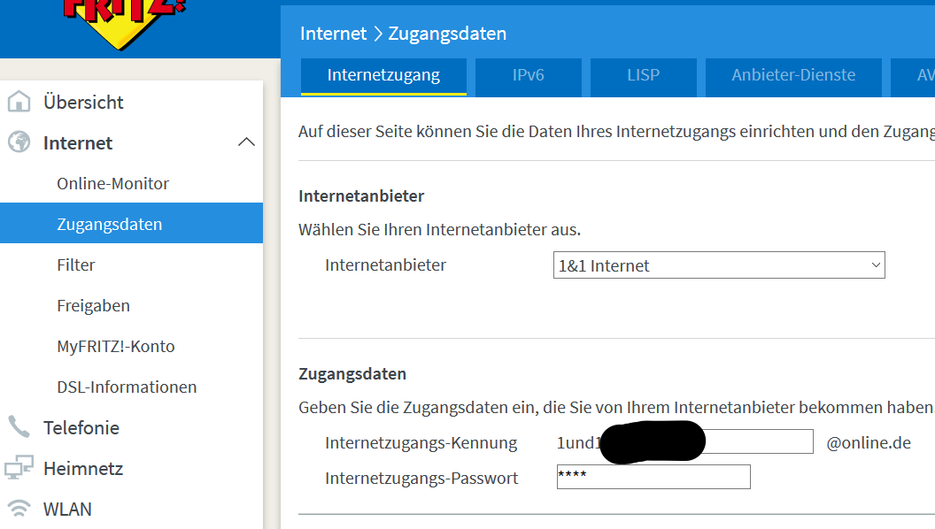 Die Einstellungen in der Fritz Box passen nicht zu meinem Tarif nach der Eingabe des Startcodes und die zugangsdaten die man auch manuell eingeben kann sind auch nach jeder neuen satdcod Einwahl weg.