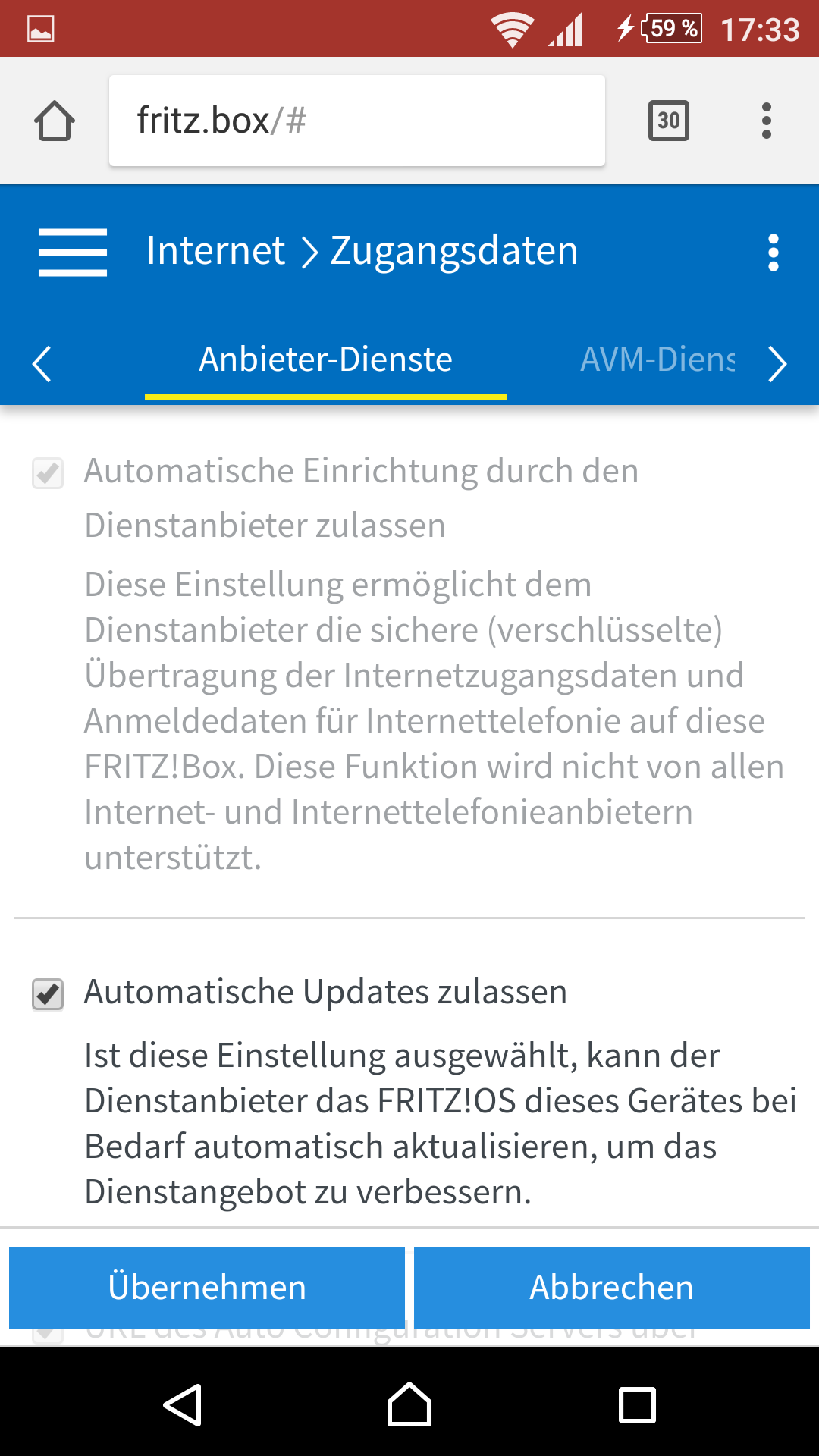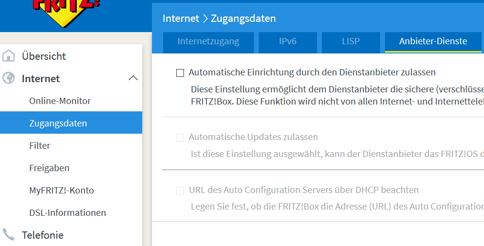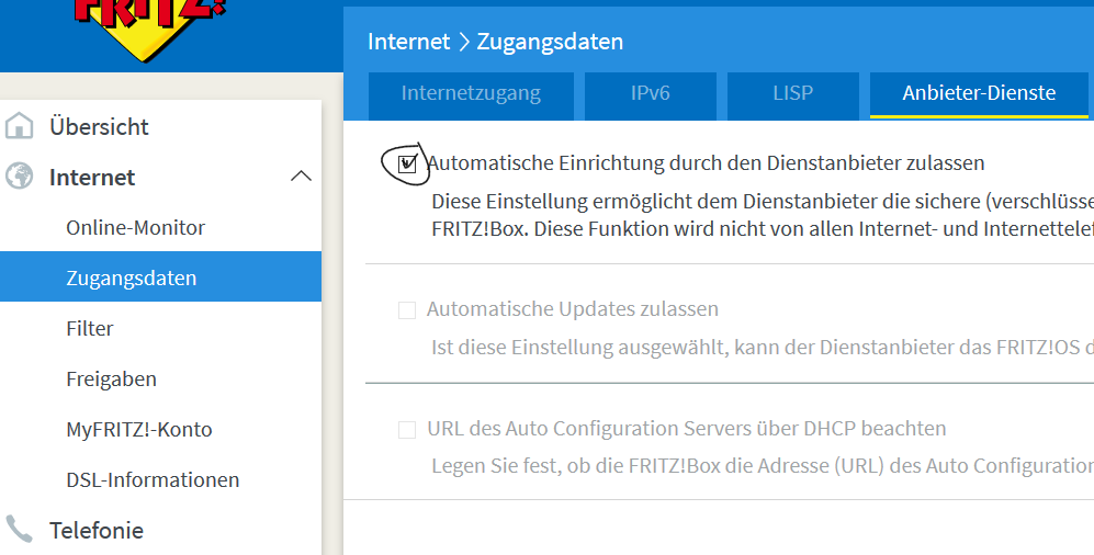 Die Fritz Box hat im Fehler Speicher stehen das er einer Zeit überschreiten hat beim Autokonfigurationsserver