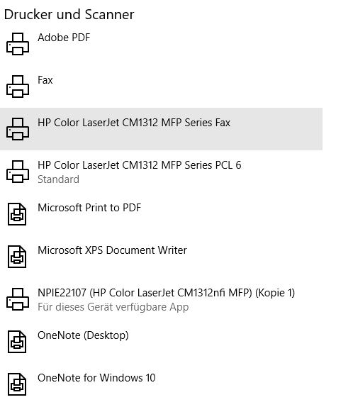 Noch kurz ein Screen zu meinen Druckern/Geräten: