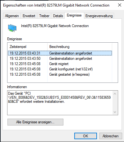 Ich habe zu Hause einen neuen Tower mit folgender Netzwerkkarte: Intel(R) 82579 Gigabit Network...
