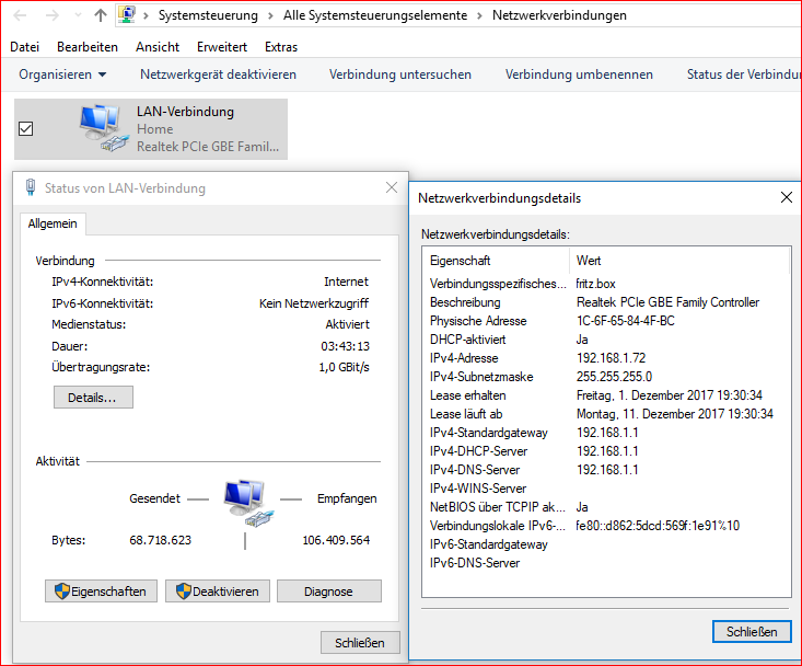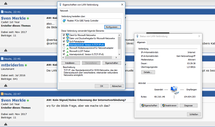 Aus meiner Wand kommt mein Netzwerkkabel, welches ich bisher immer in meinen Laptop eingeklinkt hatte. Das funktioniert acuh ganz normal. Das Kabel ist verbunden mit meinem Router unten im Haus.