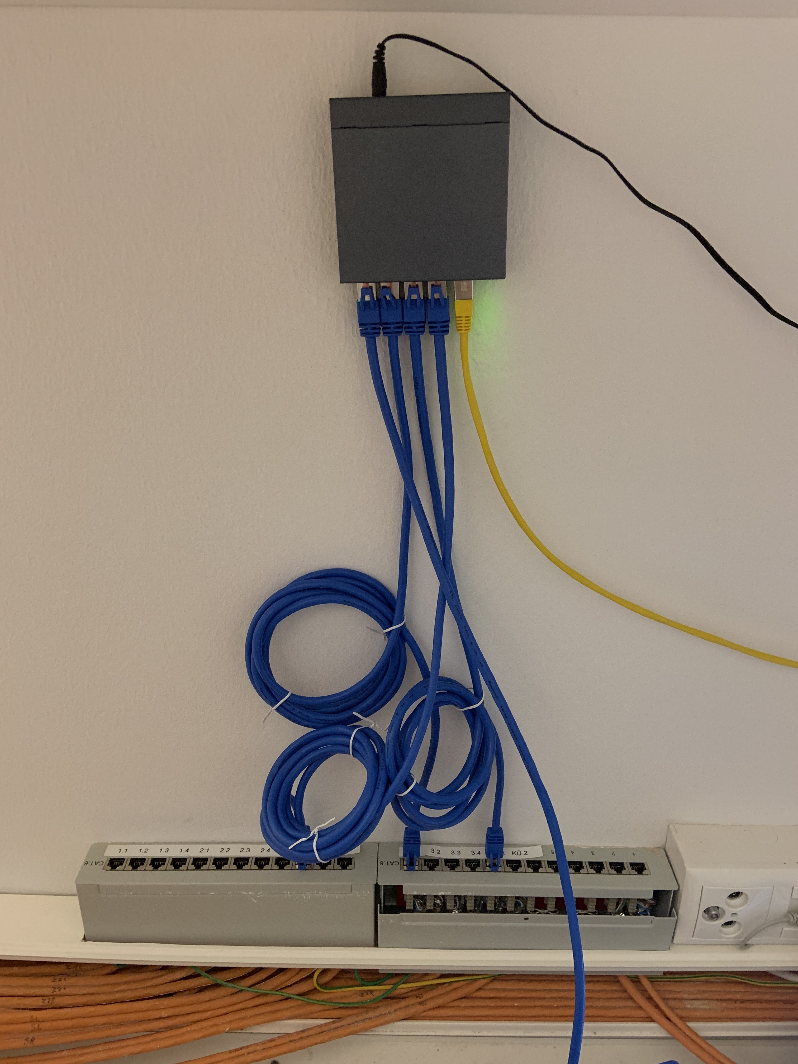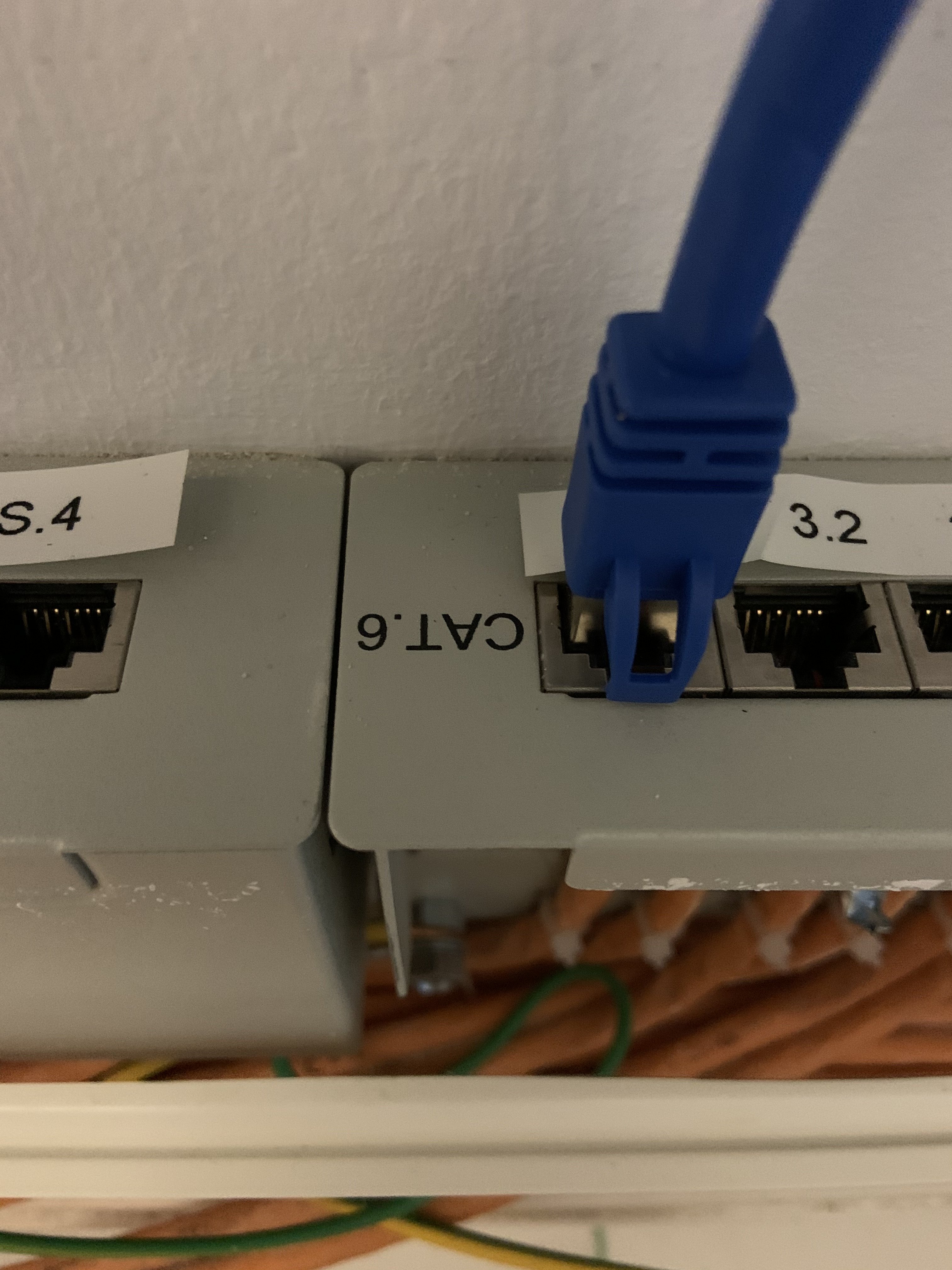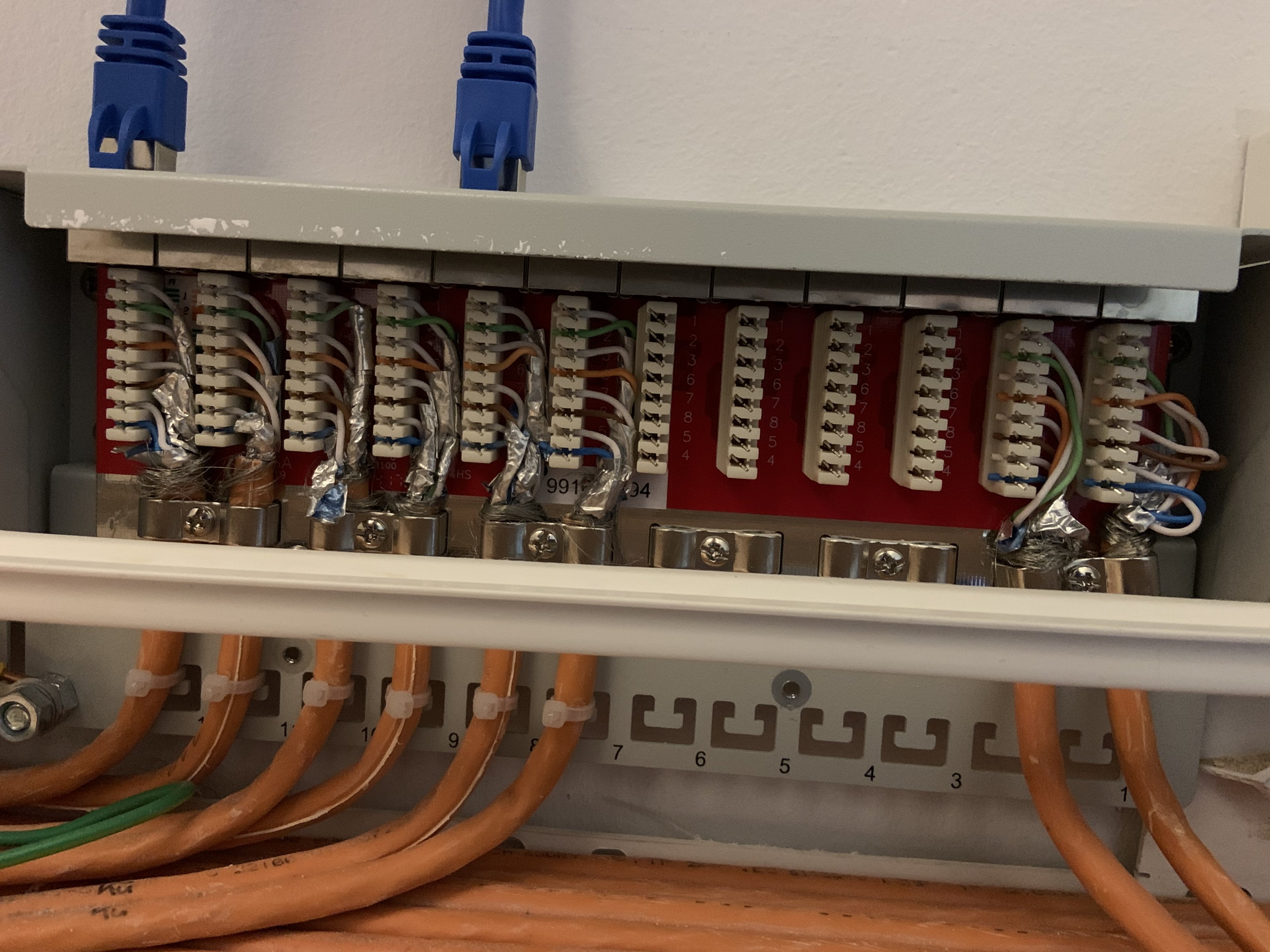für die neue Praxis meiner Frau haben wir ein „altes“ Büro übernommen. Das schöne hier scheint, dass alle Zimmer professionell mit Netzwerkdosen verkabelt worden sind. Das „Haupt-Hub“ ist im Zimmer mit TV & Telefondose, also dort, wo auch der Router steht.
