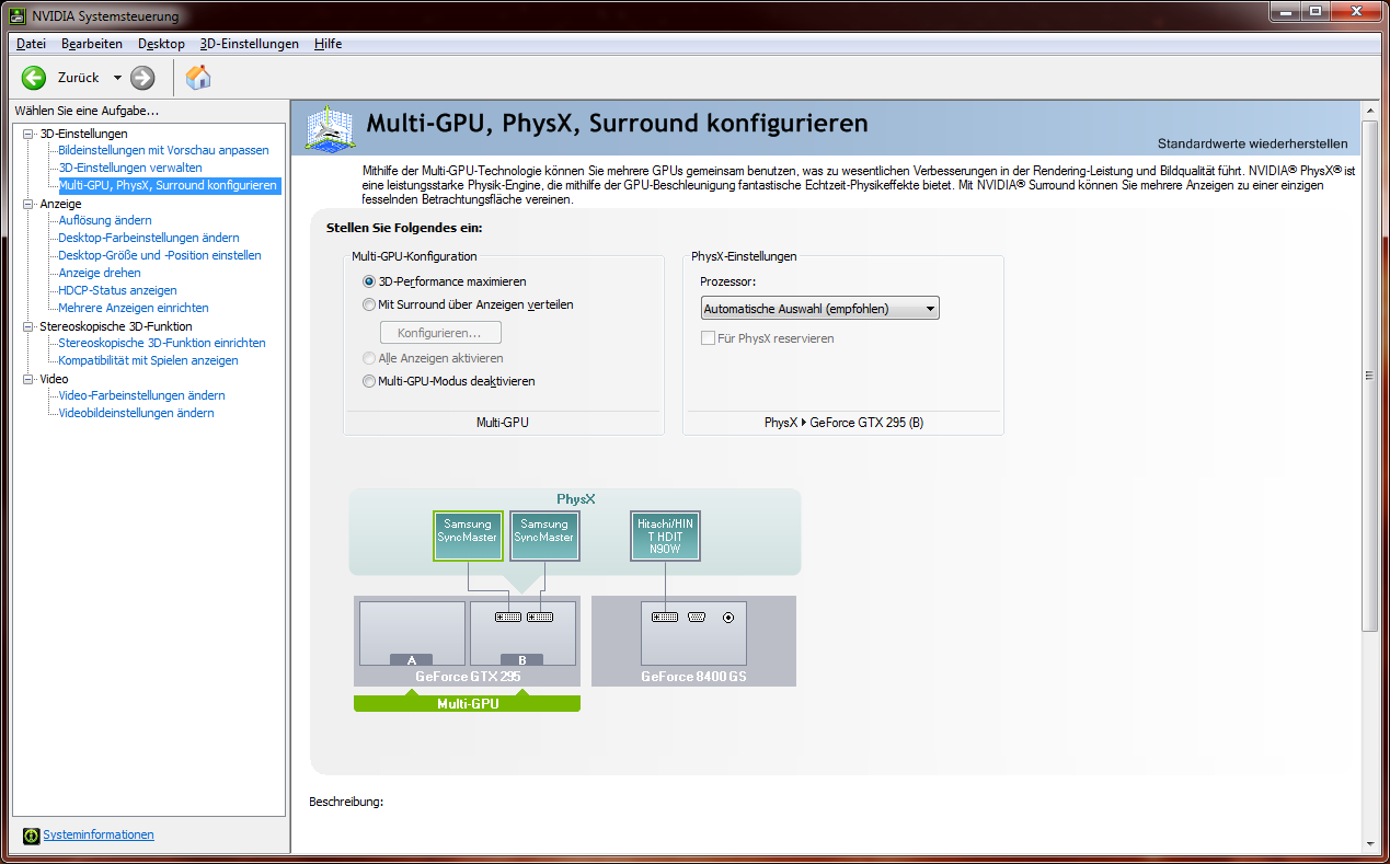 ich habe win 7 64bit installiert, habs mit SP1 und ohne probiert.. doch nirgendwo ist im treiber ein menüpunkt wo ich SLI aktivieren kann.. hab schon alles durch, system ca. 12 mal neu aufgesetzt, treiber andauernd deinstalliert und nochmal neu installiert..