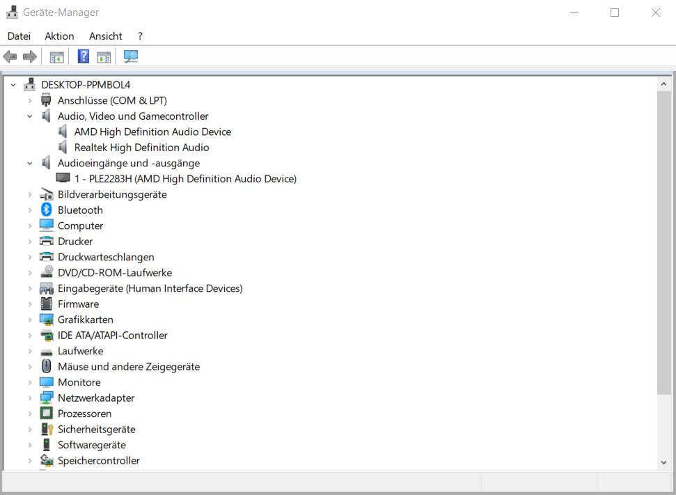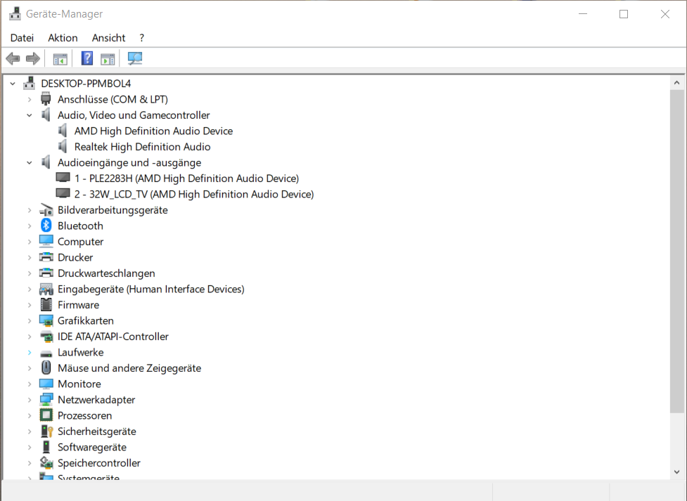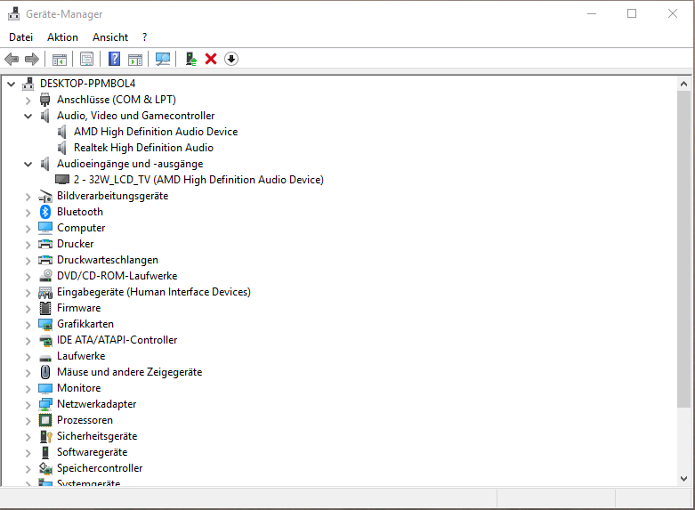 Treiber im Gerätemanager habe ich neu installiert, ebenso die AMD- und Realtek-Software. Habe auch alle möglichen Kombinationen von Kabel und Gerät (Nur HDMI, nur zweiter Bildschirm, usw.) probiert. Im Anhang zwei Screenshots aus dem GM, mit dem jeweils anderen Bildschirm angeschlossen.