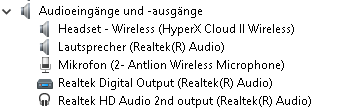 Ich bin echt am verzweifeln. Habe auch die Geräte mal über den Gerätemanager deinstalliert und dann über https://www.gigabyte.com/de/Motherboard/X570-AORUS-MASTER-rev-10/support#support-dl-driver die Audio Treiber erneut installiert. Genommen habe ich die Version [6.0.9225.1] und [6.0.9126.1]. Manchmal waren die aber auch kaputt. Habe die ausgeführt, dann wollten die den bestehenden Treiber deinstallieren. Hat das Setup getan, dann sollte ich neustarten, damit nach dem Neustart installiert werden kann. Habe ich getan, Setup startet und will erneut Audio Treiber deinstallieren und sagt mir, dass es nun deinstalliert ist und ich für die Installation neustarten soll. Währenddessen ging mein Headset (Vorne) auch nicht. Am Ende kam nach einem Neustart dann kein Setup mehr und das Headset funktioniert wieder, aber eben nicht der hintere Ausgang.