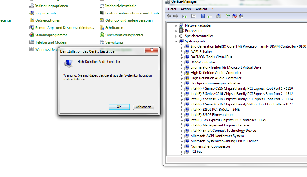 Bei Verwaltung habe ich auch schon die betroffenen Audio Geräte die mit dem Ausrufezeichen Deinstalliert und Neustarts gemacht.Sowie Treiber Neuinstallieren. Habe auch schon Windows Hotfix installiert half alles nix.
