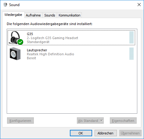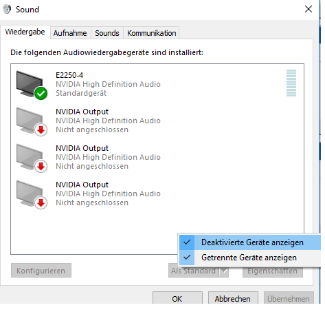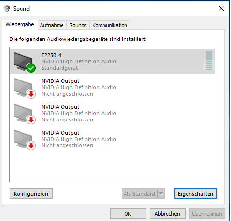 Habe nur Sound wenn ich ein USB Headset anschließe aber die Boxen werden nicht erkannt und andere normale Headsets hinten auch nicht.
