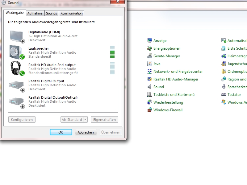 Muss man extra was im Realtek Treiber aktivieren? In den Soundeinstellungen kann ich zwei Sachen auswählen aber bei beiden kein Sound. Über die Asus Xonar DGX auch kein Sound per Opti... Analog geht es aber das will ich nicht..