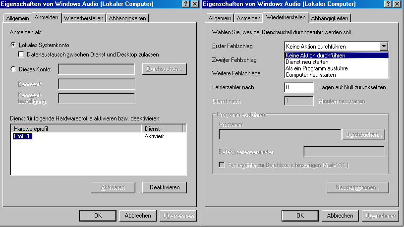 - "Windows Audio"-Dienst ist gestoppt; Starttyp: Automatisch