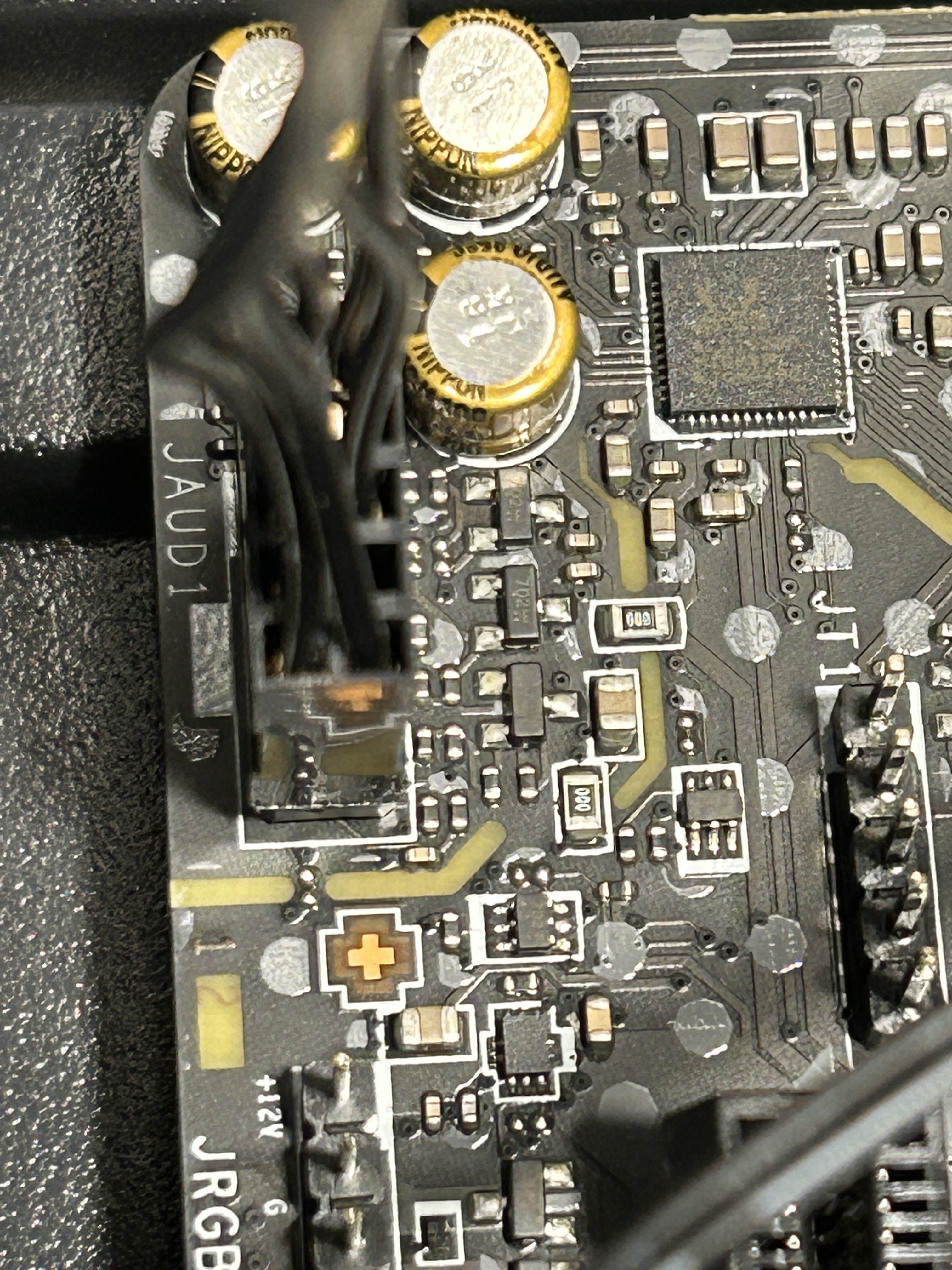 Das eine ist der Audio Anschluss vom Gehäuse, der andere die Gehäuse USB. Mit und ohne denen kann ich nicht ins BIOS