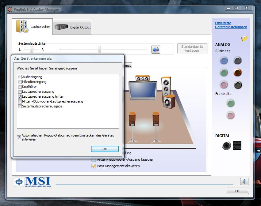 ich bekomme bei VISTA einfach keinen 5 Kanal Sound hin, hat jemand von Euch ein ähnliches Problem?