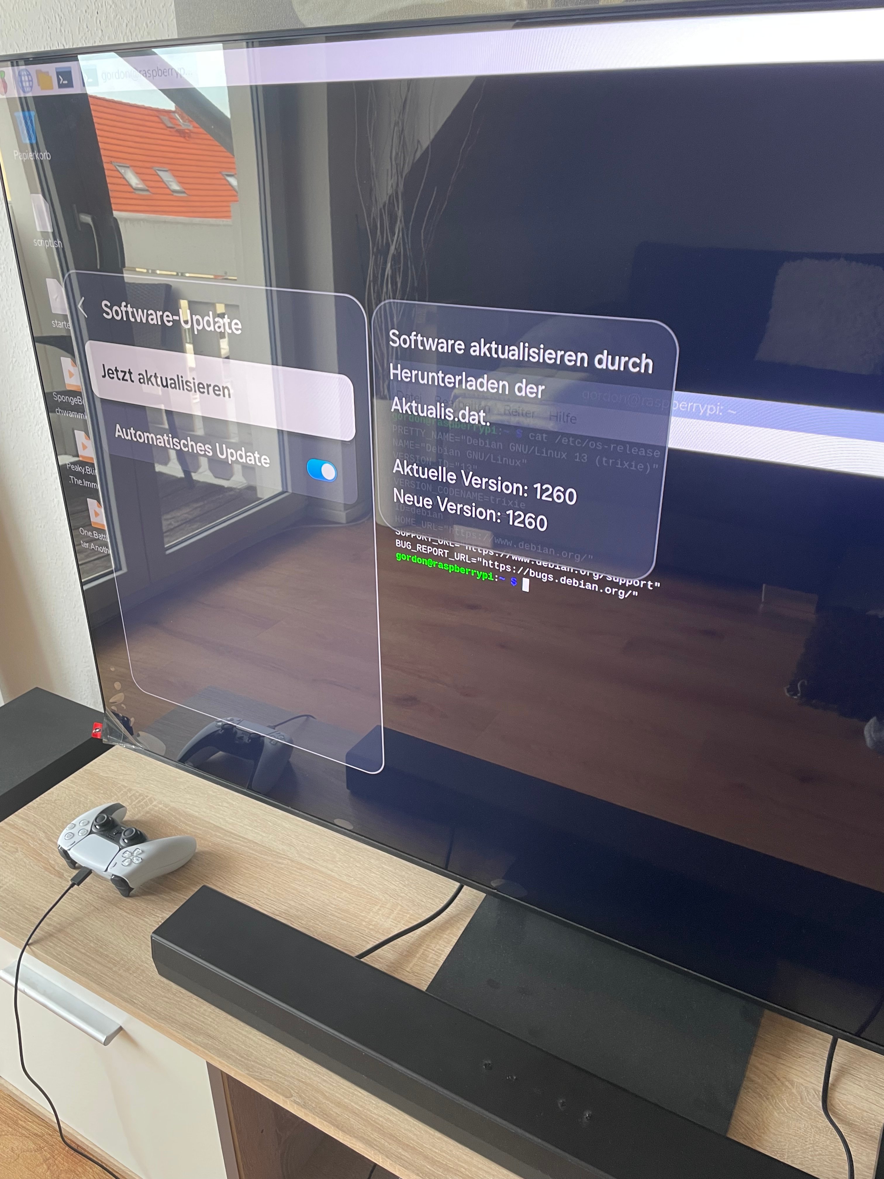 Alle Geräte aktuell (siehe Bilder): Pi 5 über Upgrade Befehl, Fernseher über OTA & Soundbar über App.