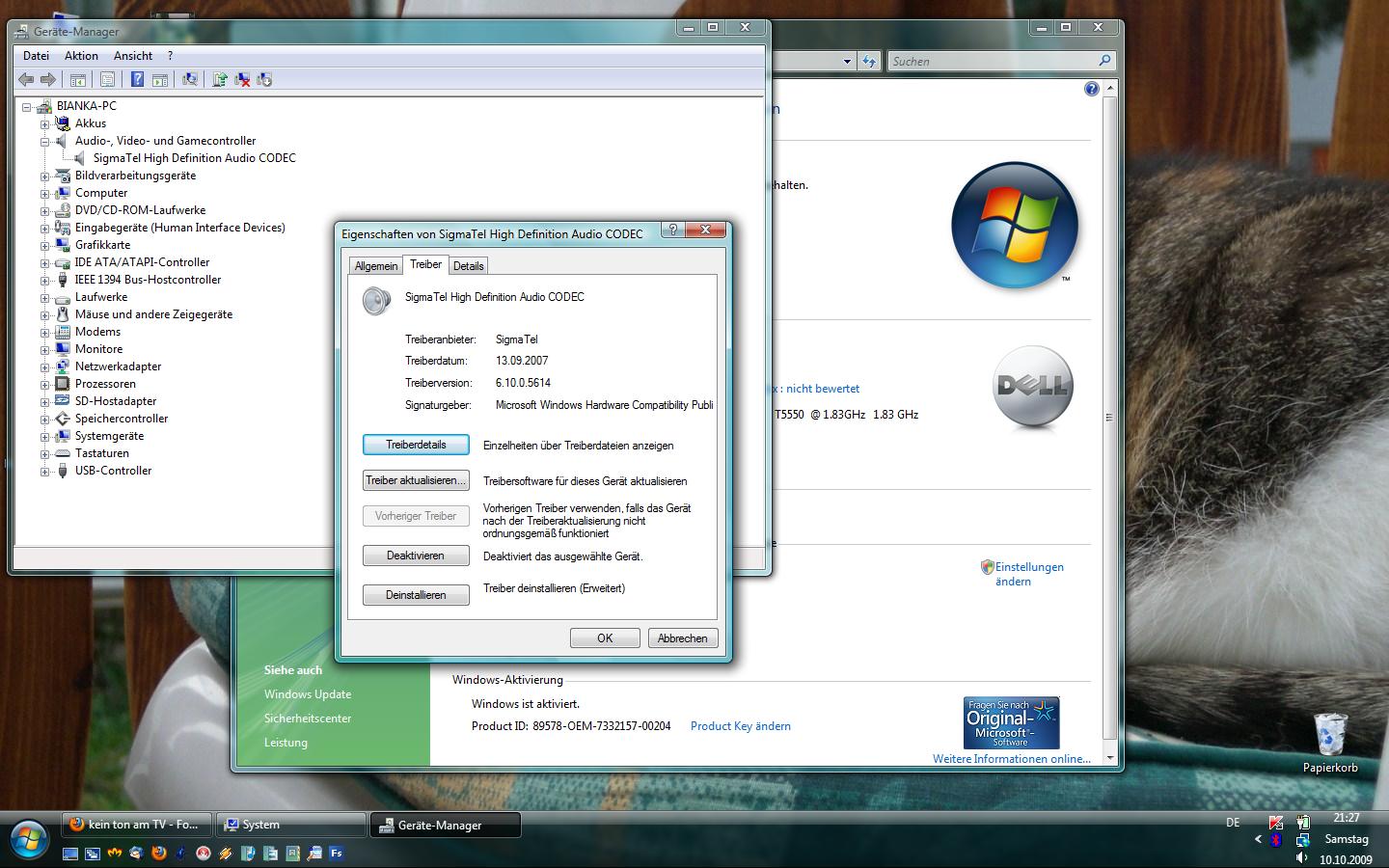 soundkarte ist eine sigmatel und die treiber sind von 2007...habe keinen neuen treiber gefunden