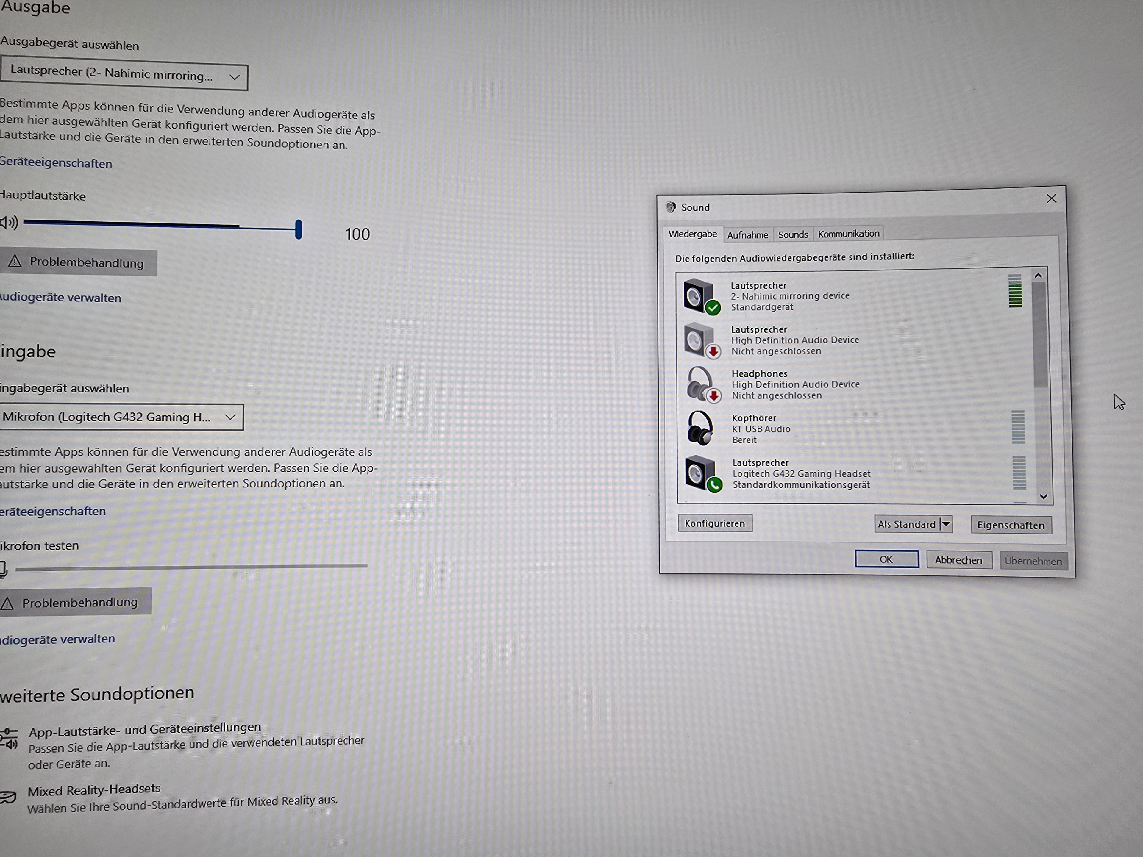 In Windows werden die Lautsprecher aber angezeigt und der Blaken bewegt sich auch bei eine Wiedergabeton