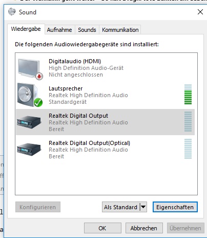 Rechtsklick unten auf den Lautstärkeregler - Wiedergabegeräte da steht bei Digital Audio (HDMI) High Definition Audio-Gerät Nicht angeschlossen
