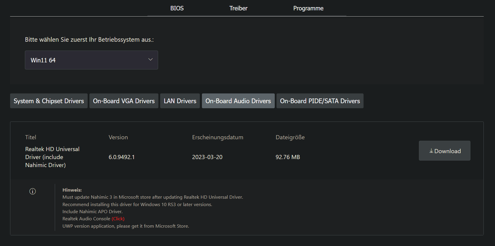 - Treiber zum Board auf der MSI Seite habe ich installiert, ebenso die Realtek und Nahimic App aus dem Appstore. Brauch man den ganzen Kram? Ein Graus, diese ganze Software...