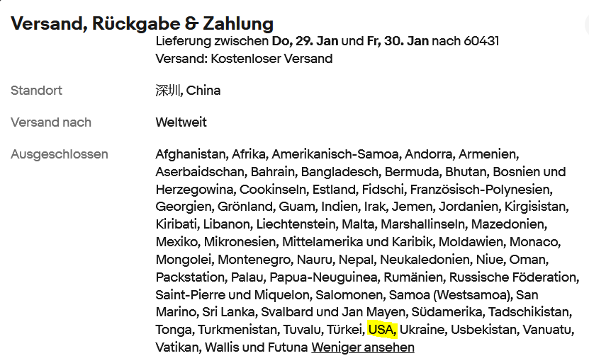 Auch interessant, an welche Länder sie nicht liefern: