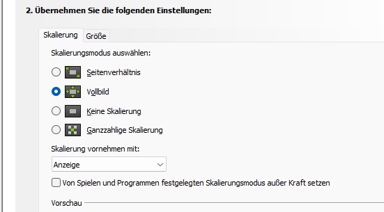 Trotz der Einstellungen in den Bildern zeigt der mir kein Vollbild an, neueste Treiber sind installiert.