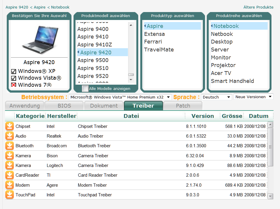 Alles läuft super, ausser einem Treiber: Den Treiber für die Webcam. Diesen kann man nicht finden, auf der Acer Seite gibt es zwar einen aber für Vista, doch den han ich auch ausprobiert, geht auch nicht.